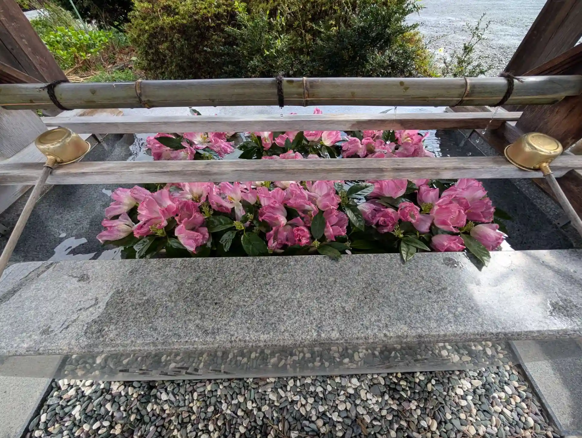 手水舎のお花や境内の桜に心を震わせ、感謝の気持ちを伝えつつ、娘の健康を祈りました。