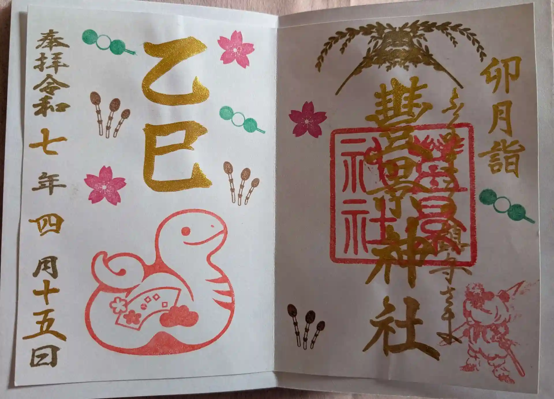 社務所にお伺いして、干支の御朱印、花朱印、縁起のいい朱印をお願いしました。