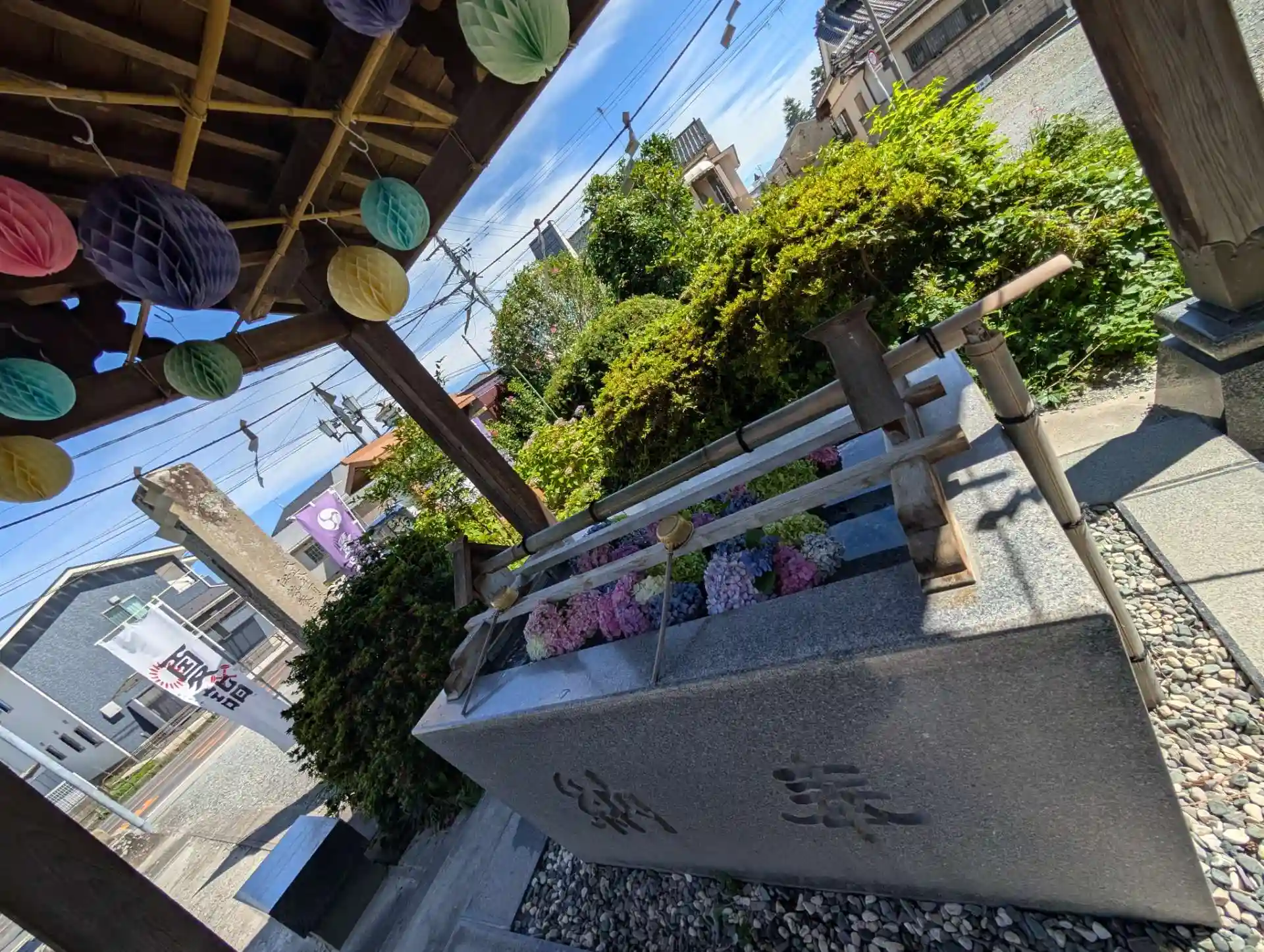 達成感を得ながら、境内ヘ進みます。日なたは流石に暑いと感じますが、日陰に入ると風が心地よく吹いてきました。