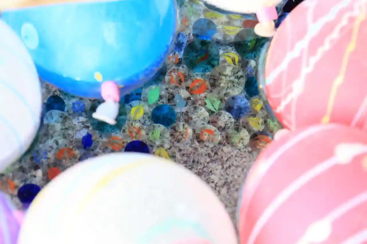 手水舎は水風船に風鈴が飾られています