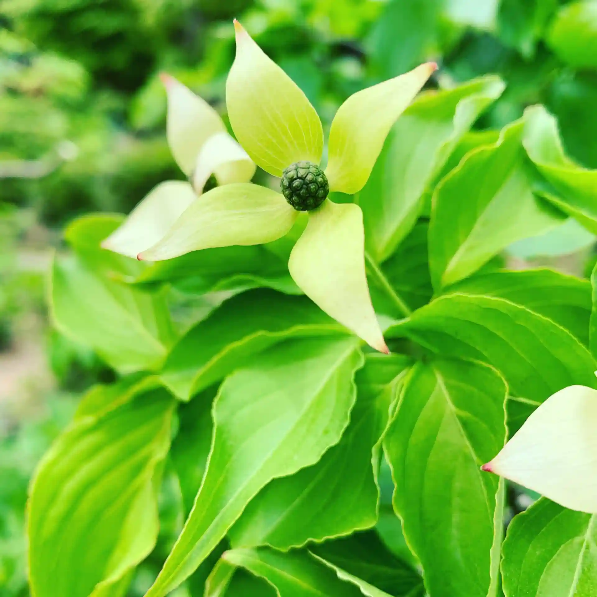 ヤマボウシがしずかに花をつけています。