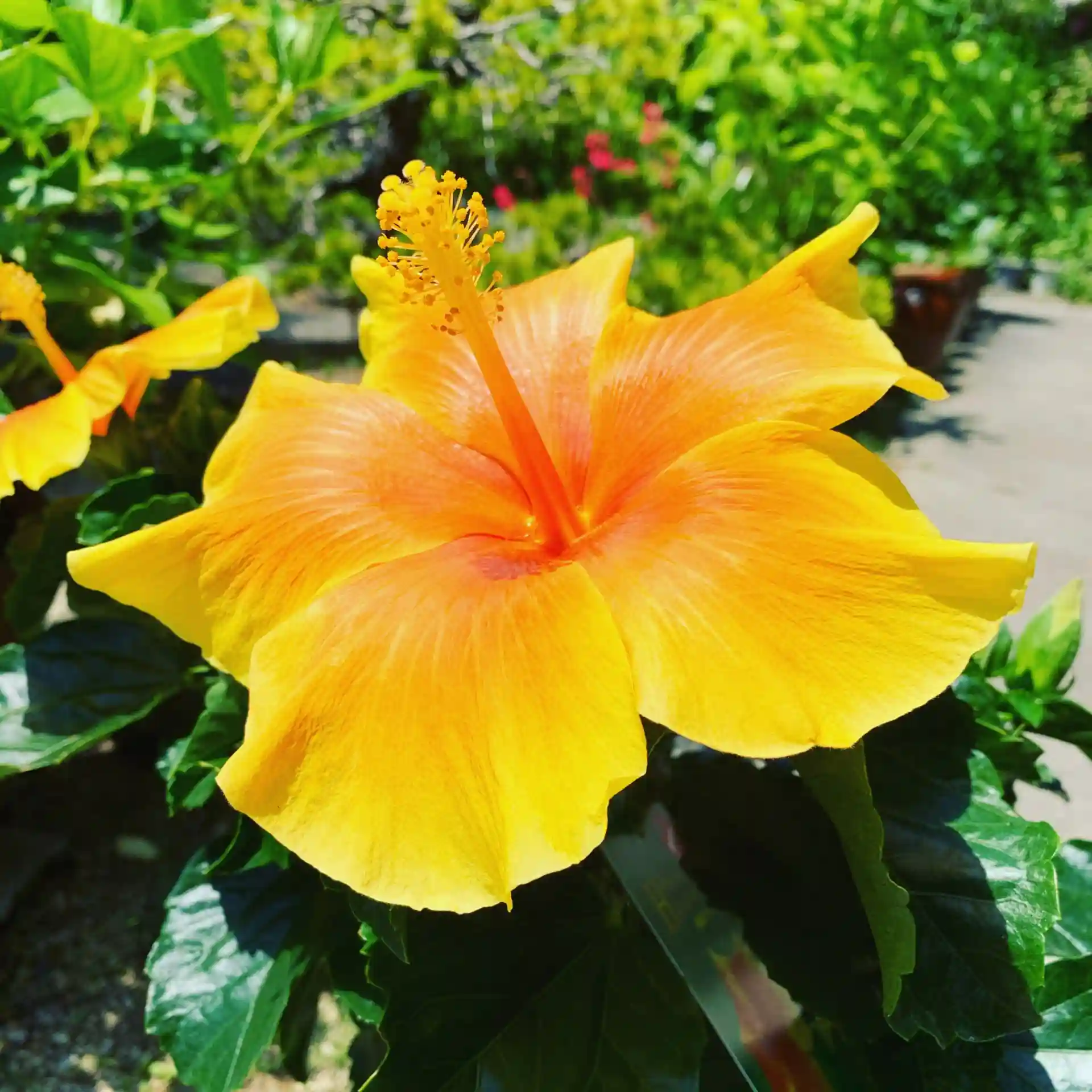 ハイビスカスが鮮やかな花を咲かせています。