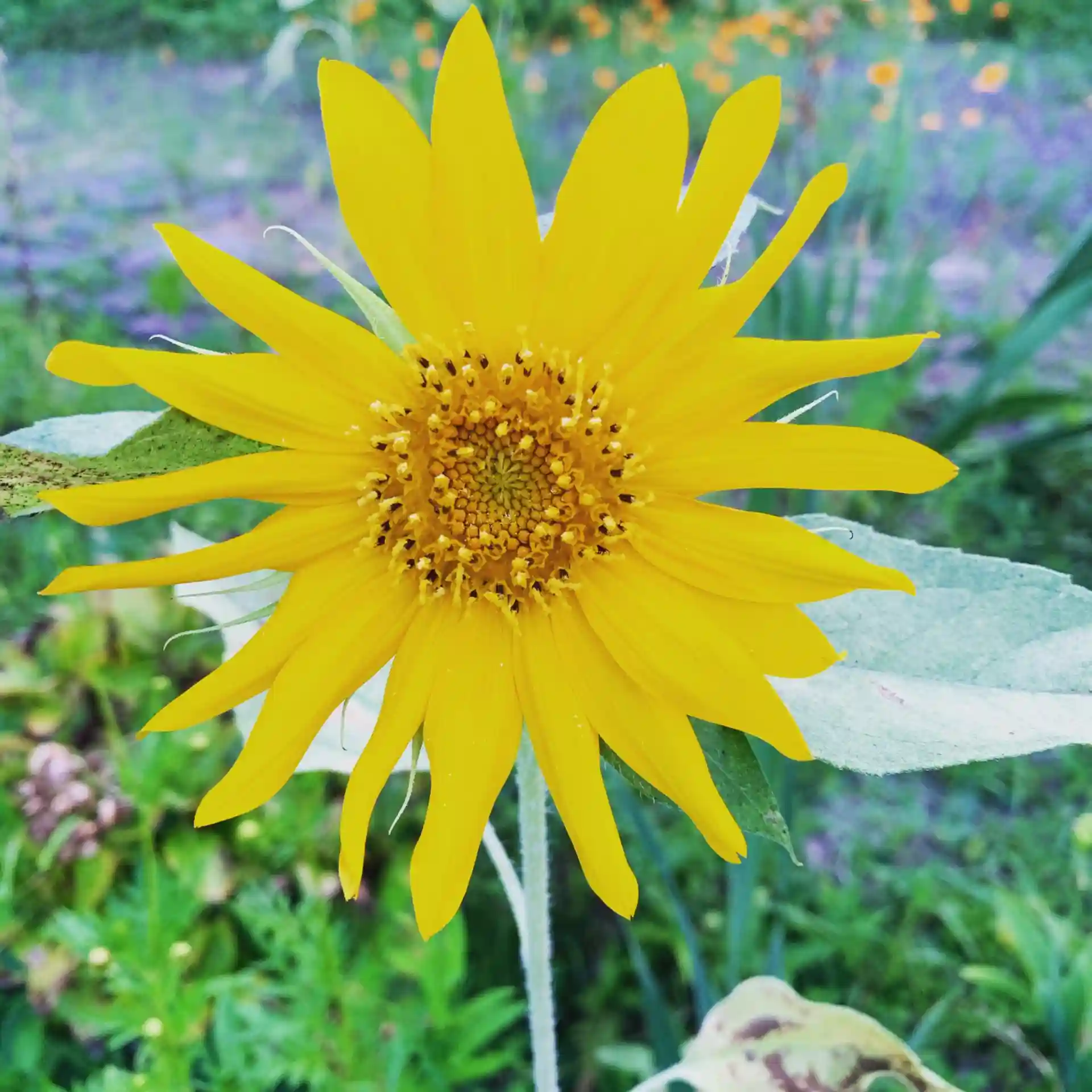 ひまわりが太陽に向かって花を咲かせています。