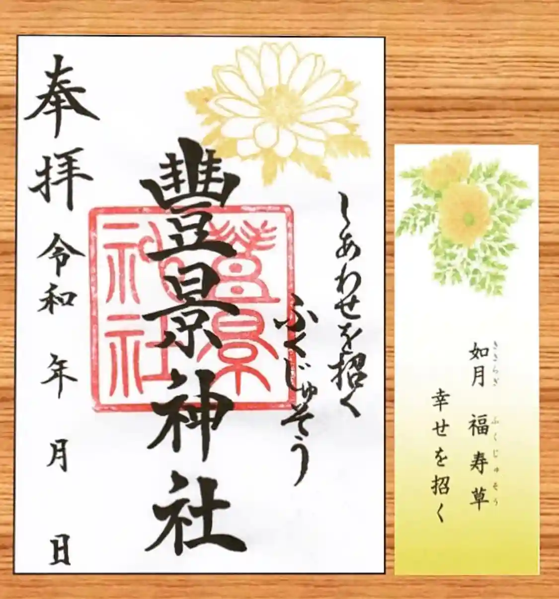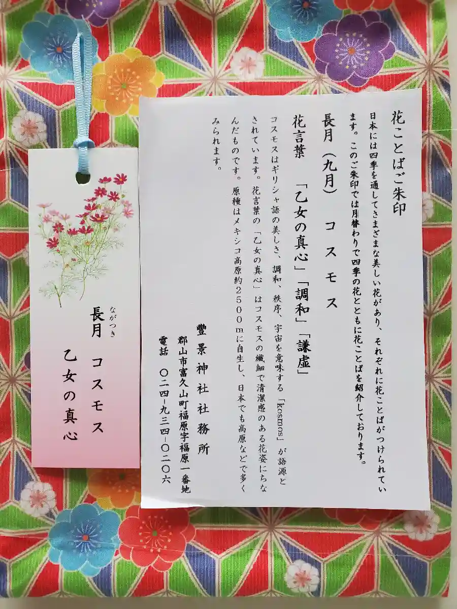 毎月お花のご朱印を頂くと一緒に栞がついてきます。