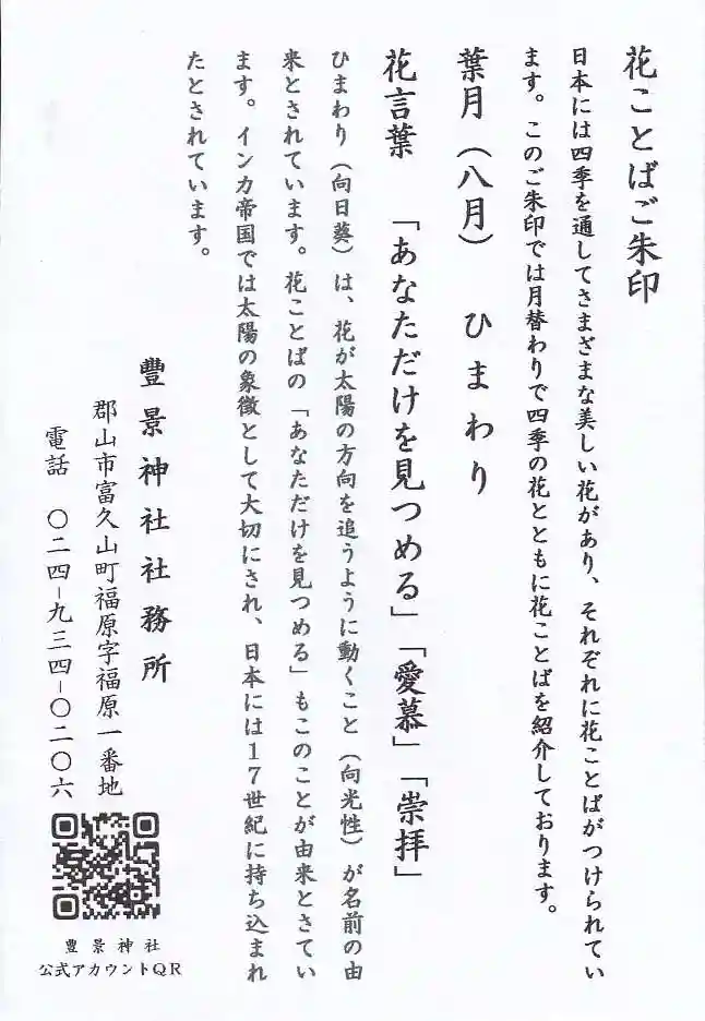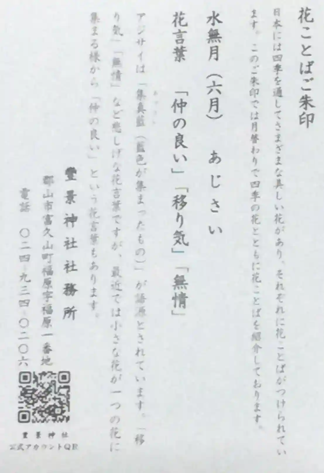 月替わりの「花ことば御朱印」をいただきました☺️