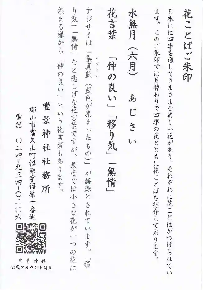 6月の花の御朱印としおりです。