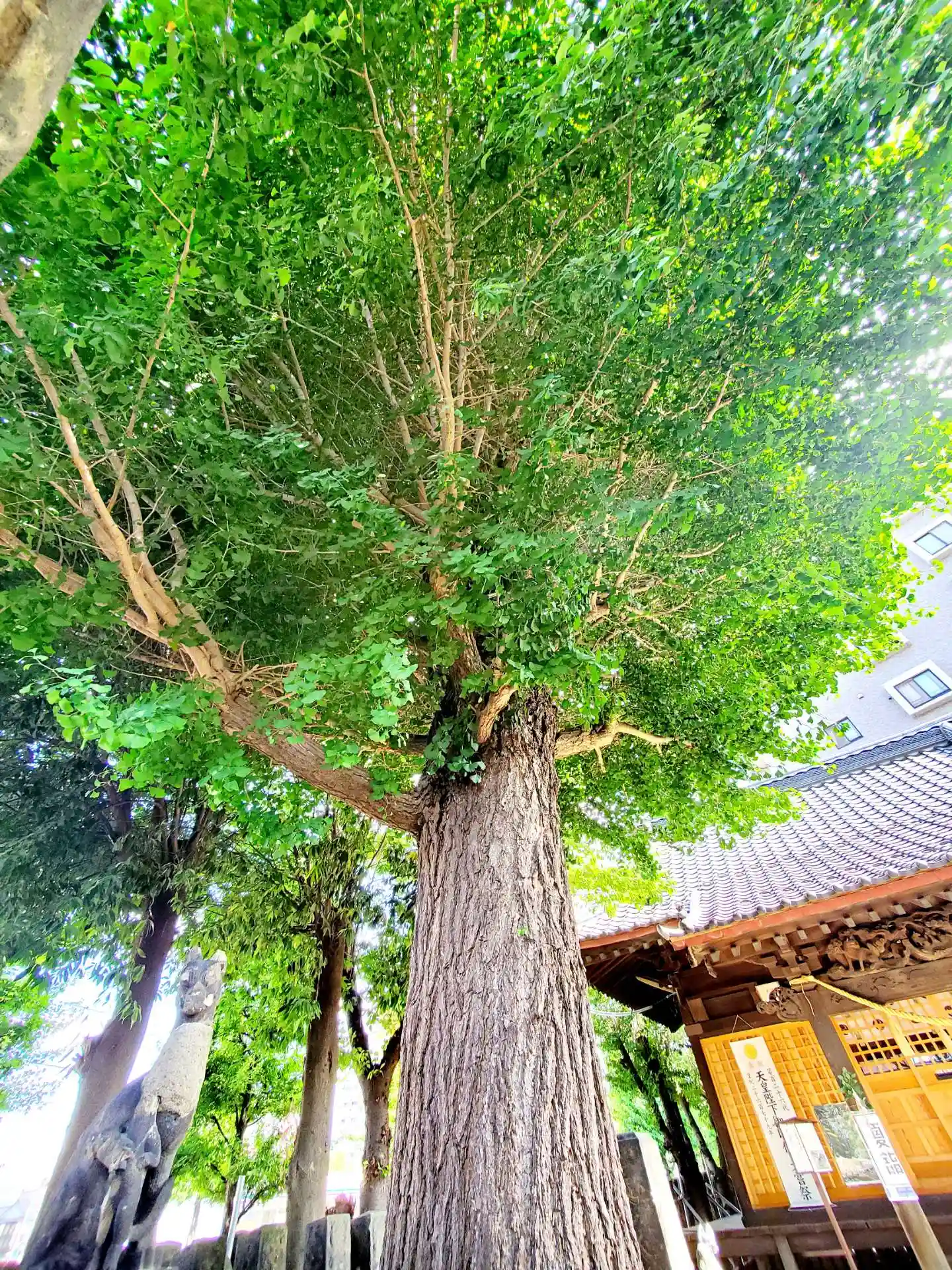 御神木の大銀杏木と赤い屋根が目印です。