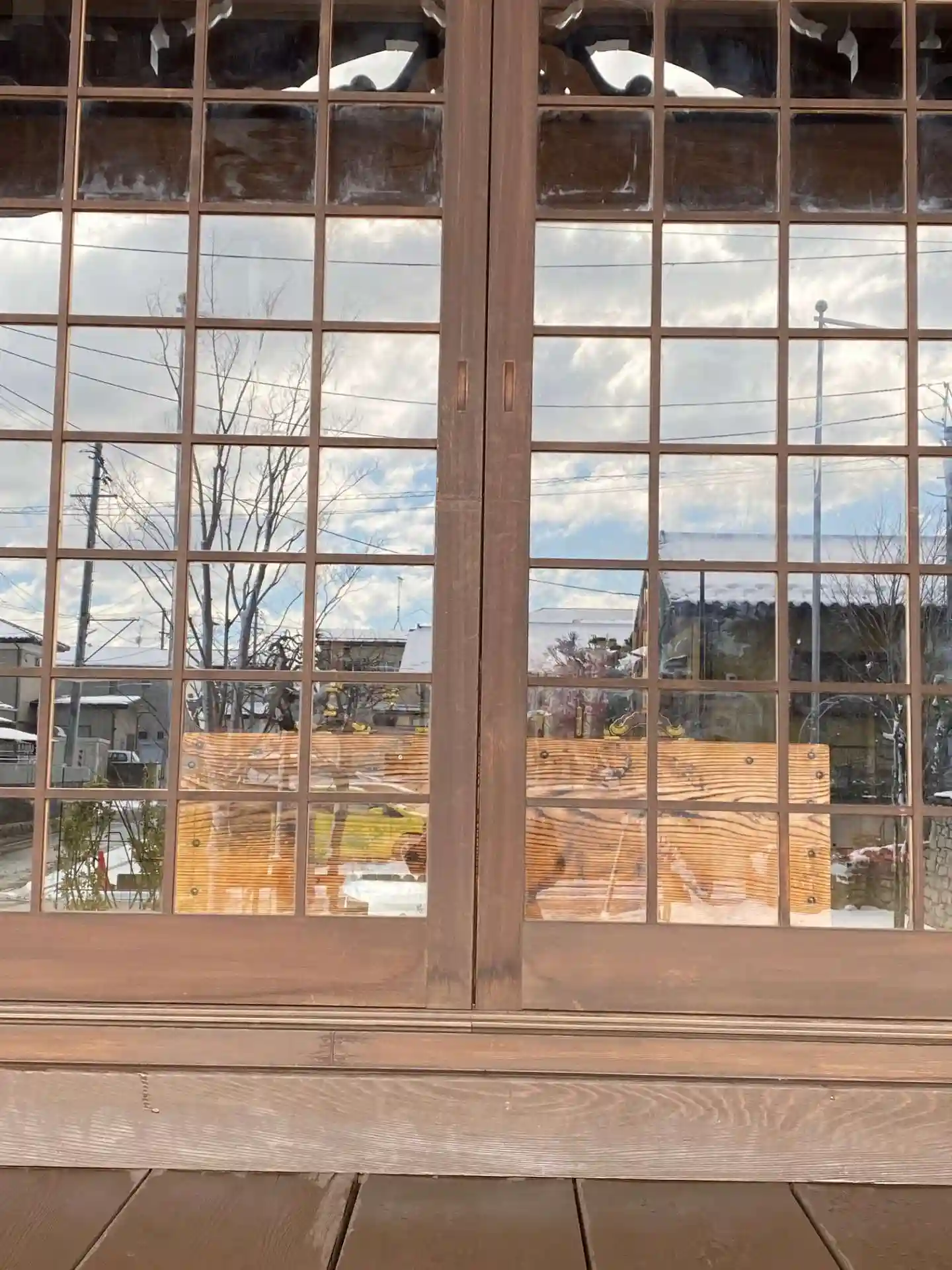 土足厳禁の所も朝の吹雪で水浸しの為上がれずでお賽銭までも行けませんでした