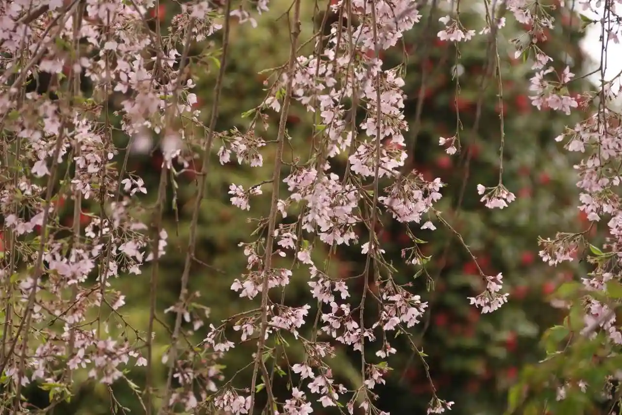 境内のしだれ桜が散り始めていました