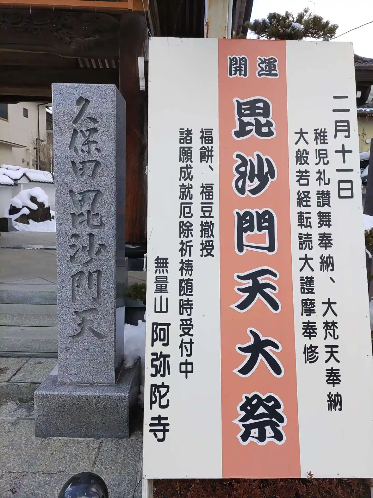2月11日に毘沙門天大祭が行われ稚児の礼賛舞、大護摩…