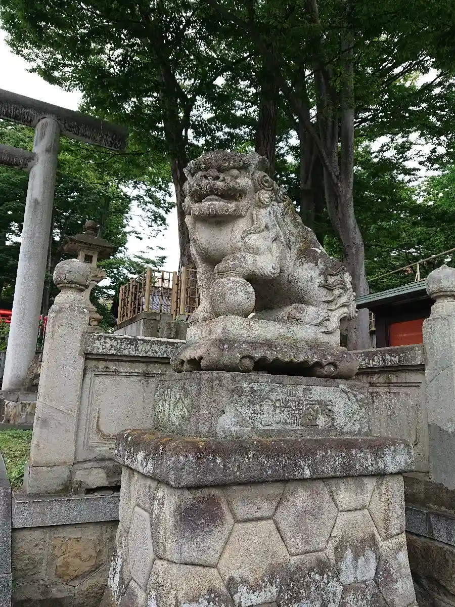 狛犬の背中の赤ちゃん狛犬が可愛い。