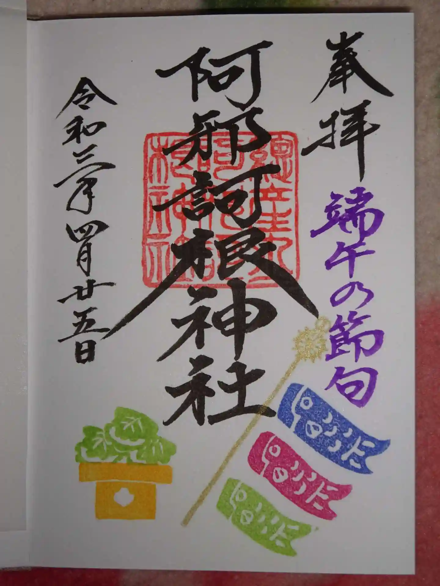 有給とって 明日からフライングゴールデンウイークという4/27!この日^^ 阿邪訶根神社様から 端午の節句の御朱印が我が手元に舞い降りてきました^^