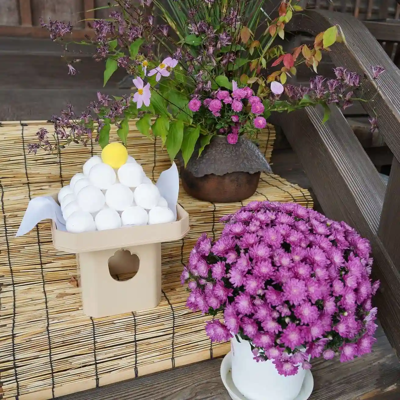 神社管理人様の手作り「菊玉」が実に素晴らしい。