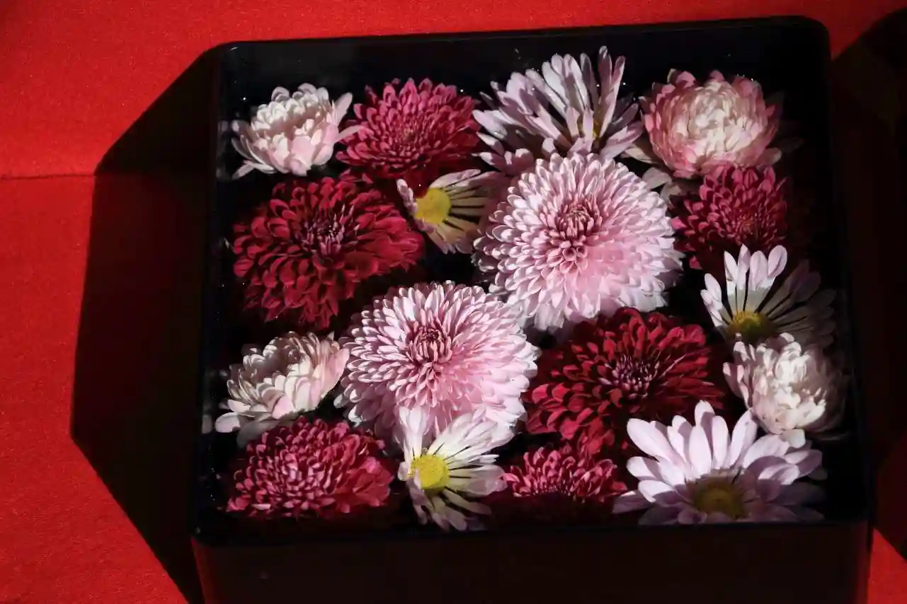 拝殿には綺麗な菊玉が飾られています。