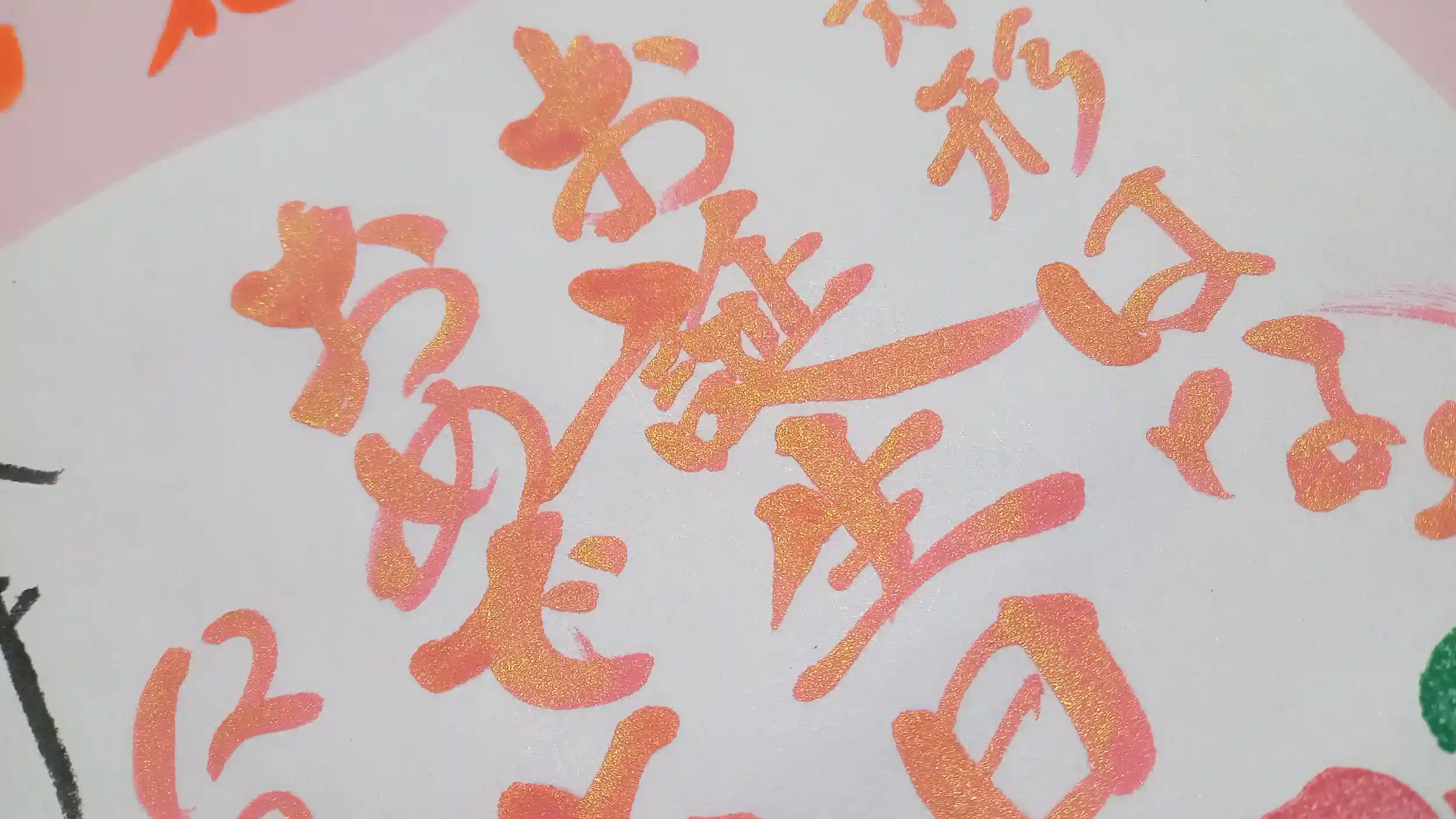 鮮やかな椿に負けないように、赤にゴールドをプラスして✨キラキラ文字にしました。