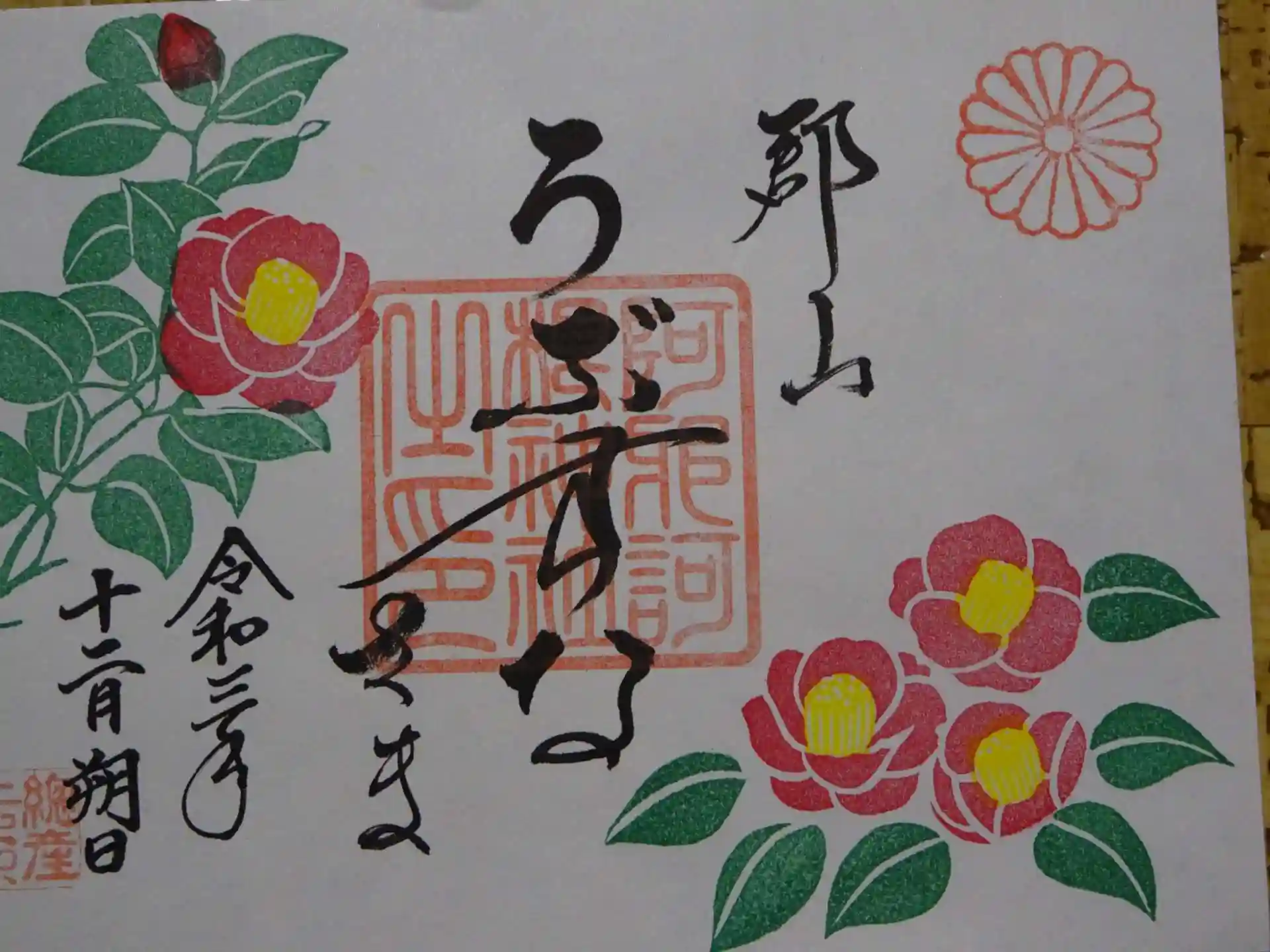 今月も 冬ツバキの鮮やかな花御朱印2種 と