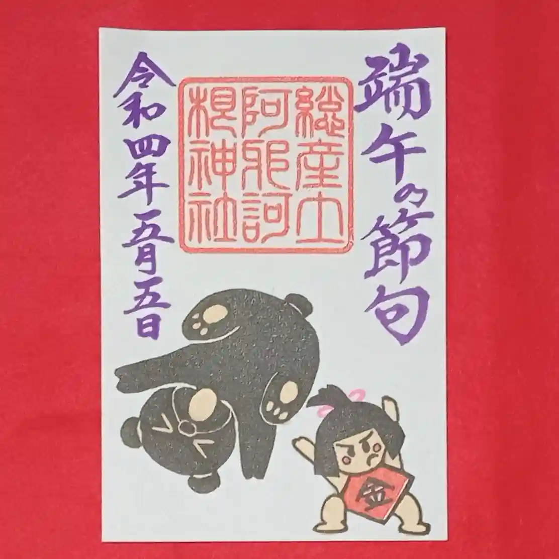 片面には五月人形でよく見かける「金太郎」を彫りました。健やかで元気よくの願いが込められた金太郎・・・御朱印の金太郎は思いっきり熊さんを投げ飛ばしていて元気良すぎですが💦