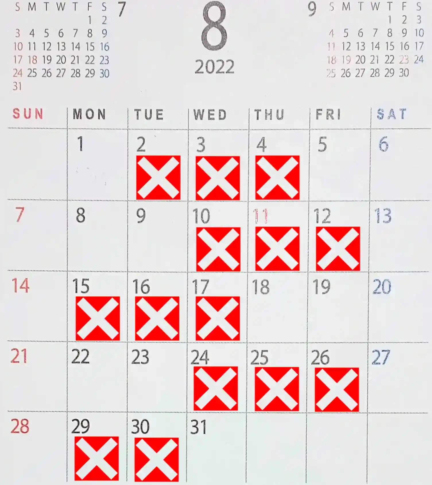 ❎は直書きお休み、書置きの対応になります。