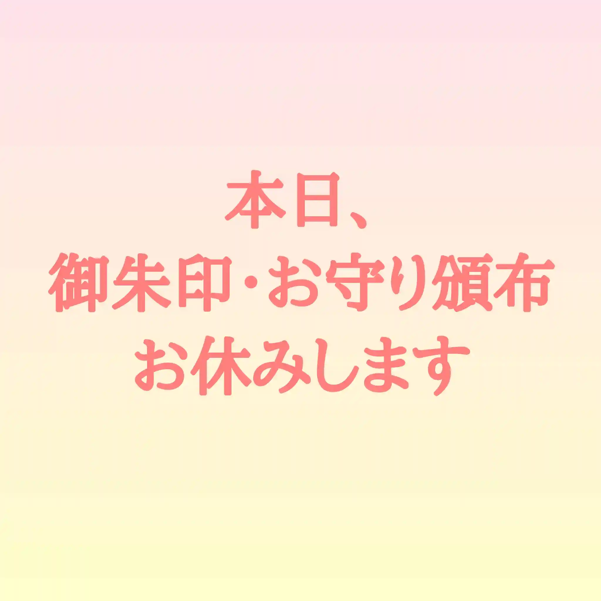 本日、御朱印直書きお休み日ですが、授与所もお休みとさせて頂きます。