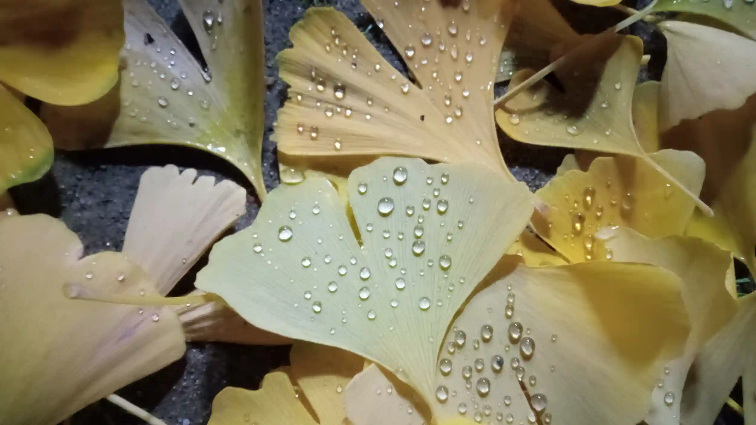 雪のように降ったイチョウの葉。