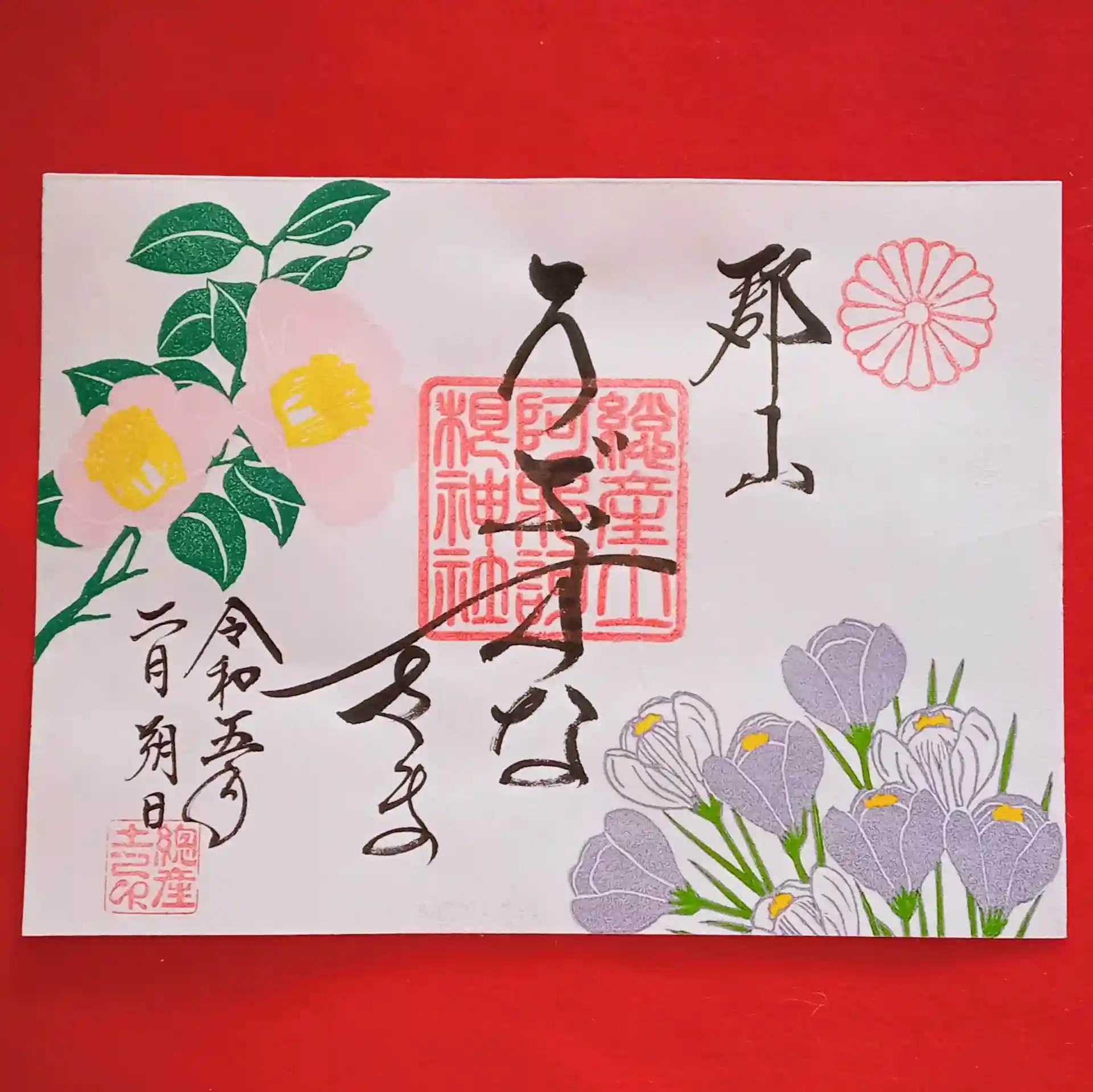 2月の花御朱印「椿とクロッカス」