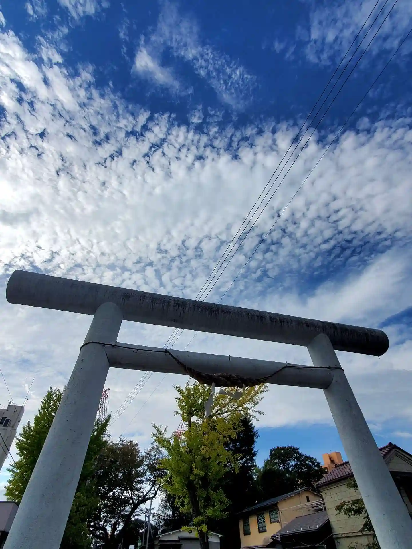 境内で見上げた空は、すっかり秋の空。