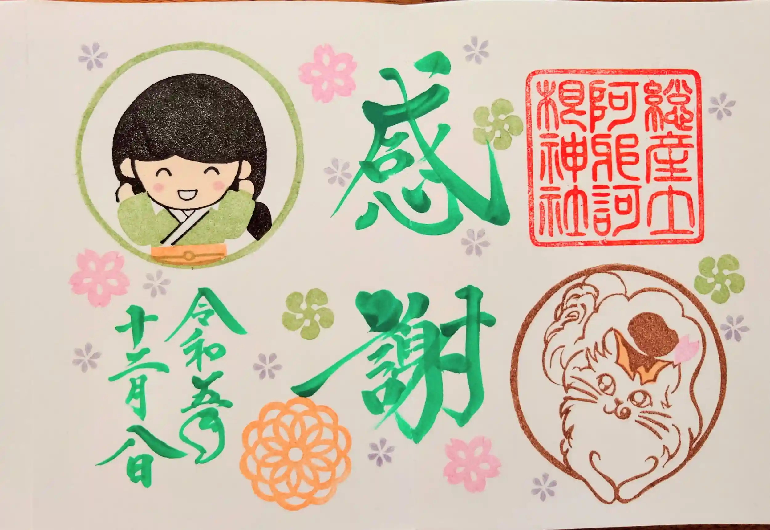 12月も阿邪訶根神社さんへ参拝しました。花御朱印のポインセチアを見ると今年もあと少しだねと家内と話をし、冬詣・猫の御朱印も可愛らしくてお気に入りです。またホトカミちゃん投稿キャンペーンの特別御朱印が当たり猫のはなちゃんに感謝・感謝です。うぶすな様、今年一年ありがとうございました。また来年もどうぞよろしくお願いします🙇