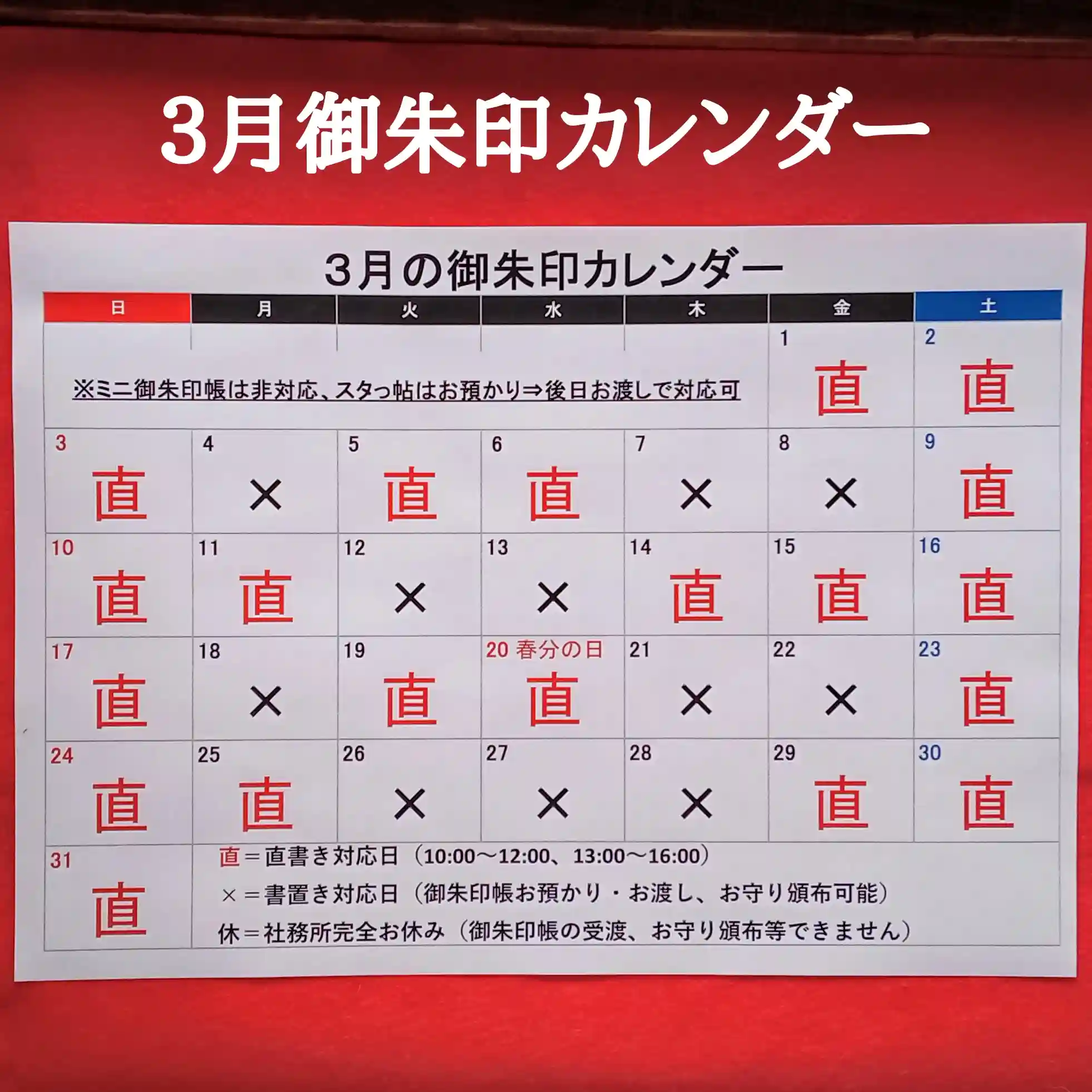 3月の御朱印直書きカレンダー📅