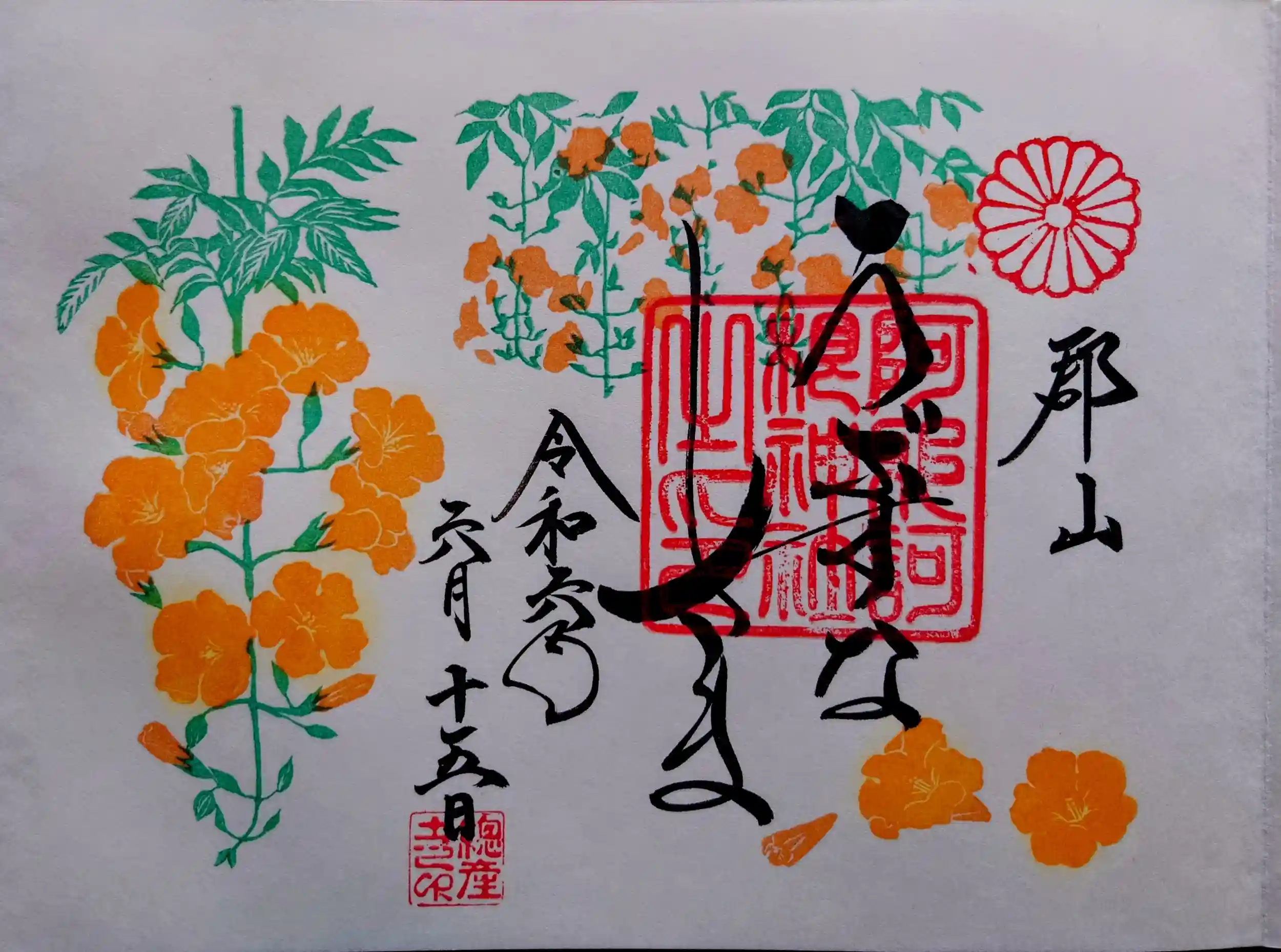 6月の月参りにうぶすな様に参拝して花御朱印と夏詣の猫御朱印を頂きました。