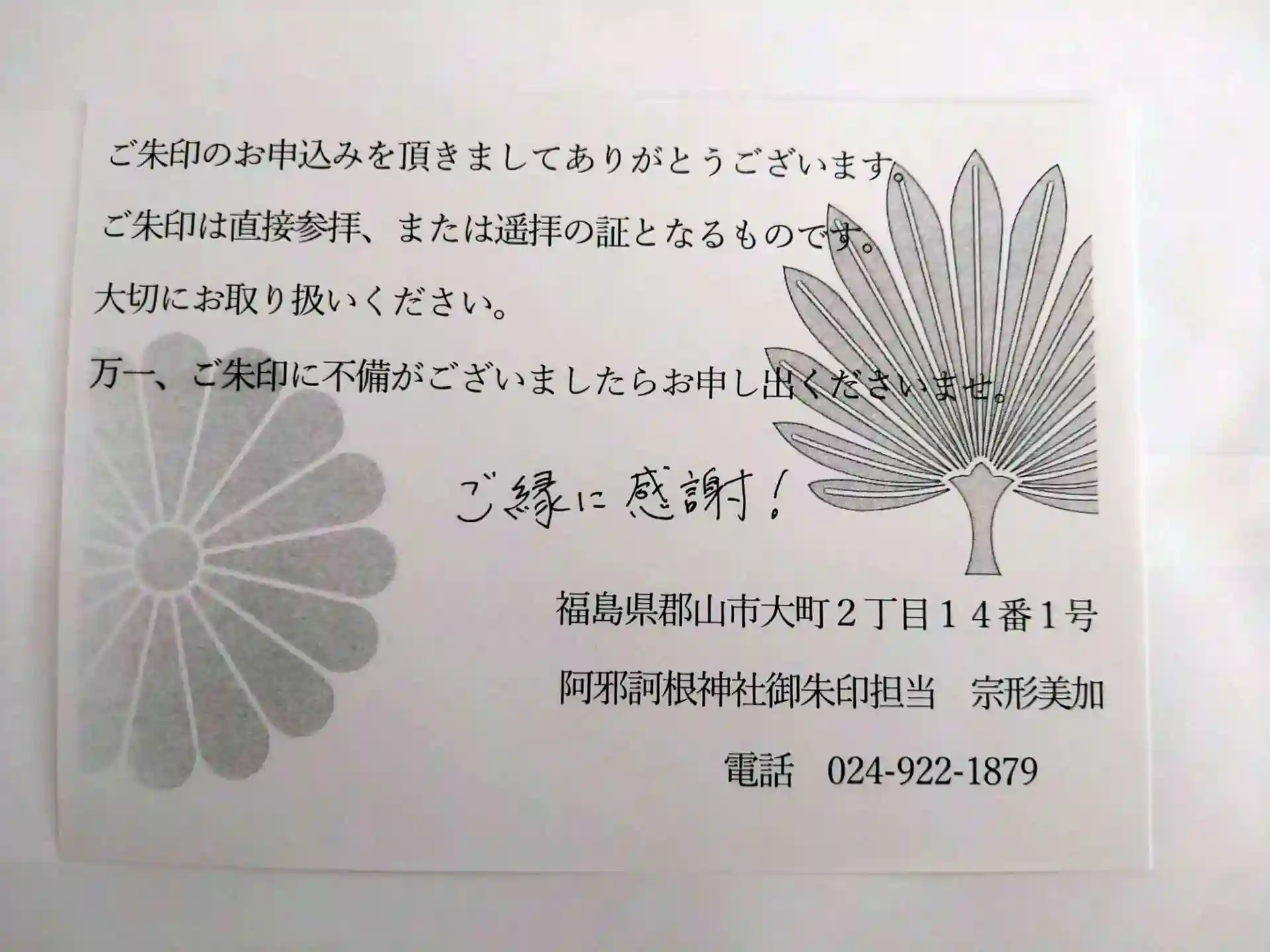 若い頃郡山市には何度か行っていました、思い出の場所です、父の兄が暮していたので、叔父は私達兄弟の名付け親でもあります😌、今は郡山の地に眠っています、それで縁の有る場所の神社さんから、有り難く御朱印をいただき、叔父を思い出し遥拝しました🙏🙇