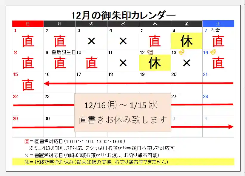 12月の御朱印カレンダー📅とお詫び🙏