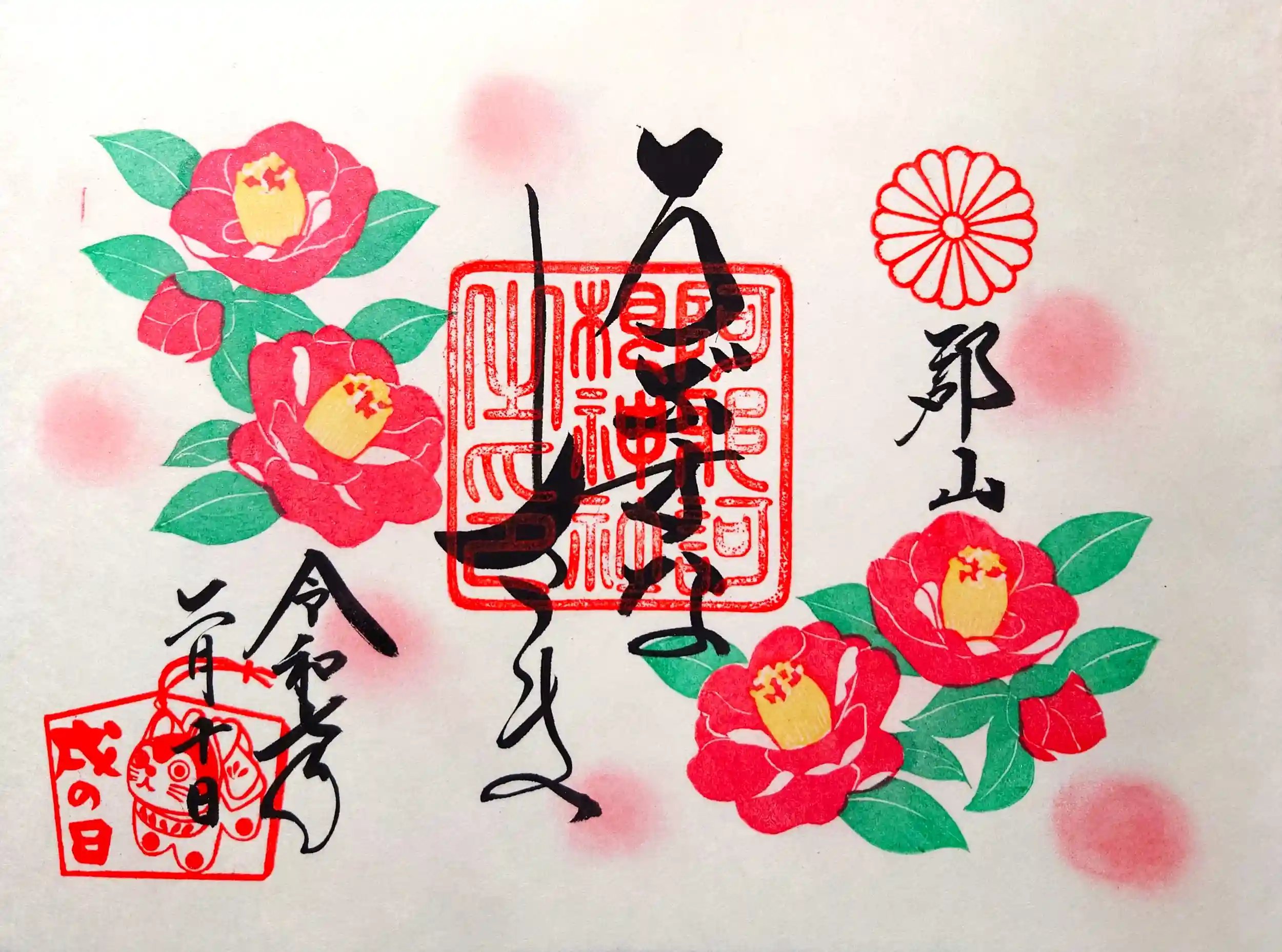 今回は、2月の花御朱印『椿』とねこの日 御朱印を頂きました。 とっても可愛いねこちゃんが御朱印内にいました。