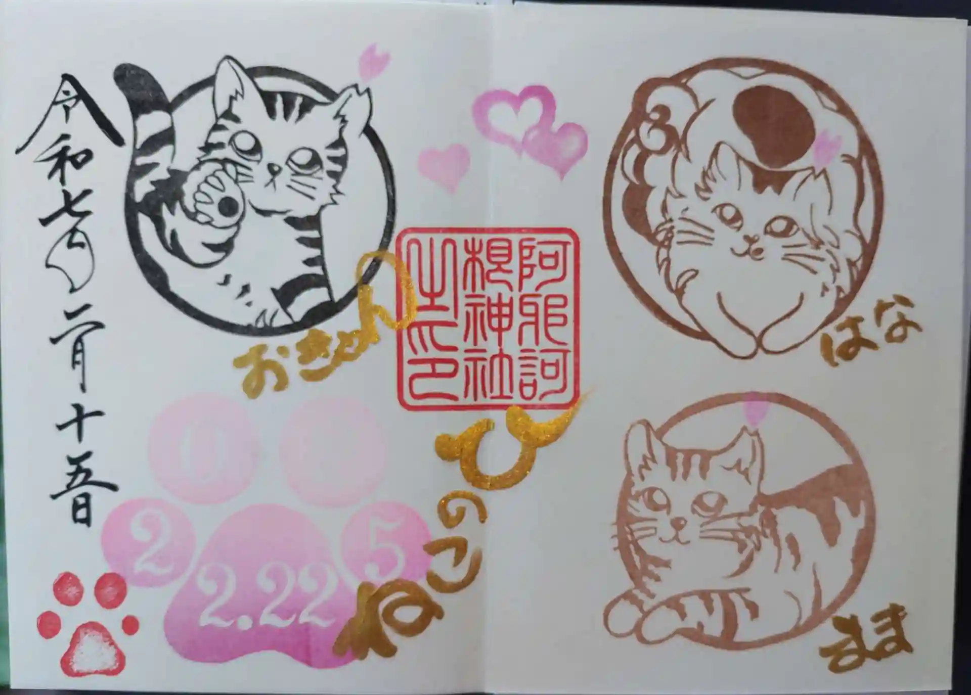 午後はポカポカ陽気でお参り日和です。娘とお伺いして、2月の花御朱印「椿」の片面にホトカミちゃん、猫の日の御朱印をあさかね神社さんの御朱印帳に直書きして頂きました。神社さんの猫のはなちゃんに初めてお会いしましたよ。暖かくて目の前でコロンとして、とてもリラックスしているところ…追跡して撮影させて頂きました😽。可愛いですね。とても癒やされました。