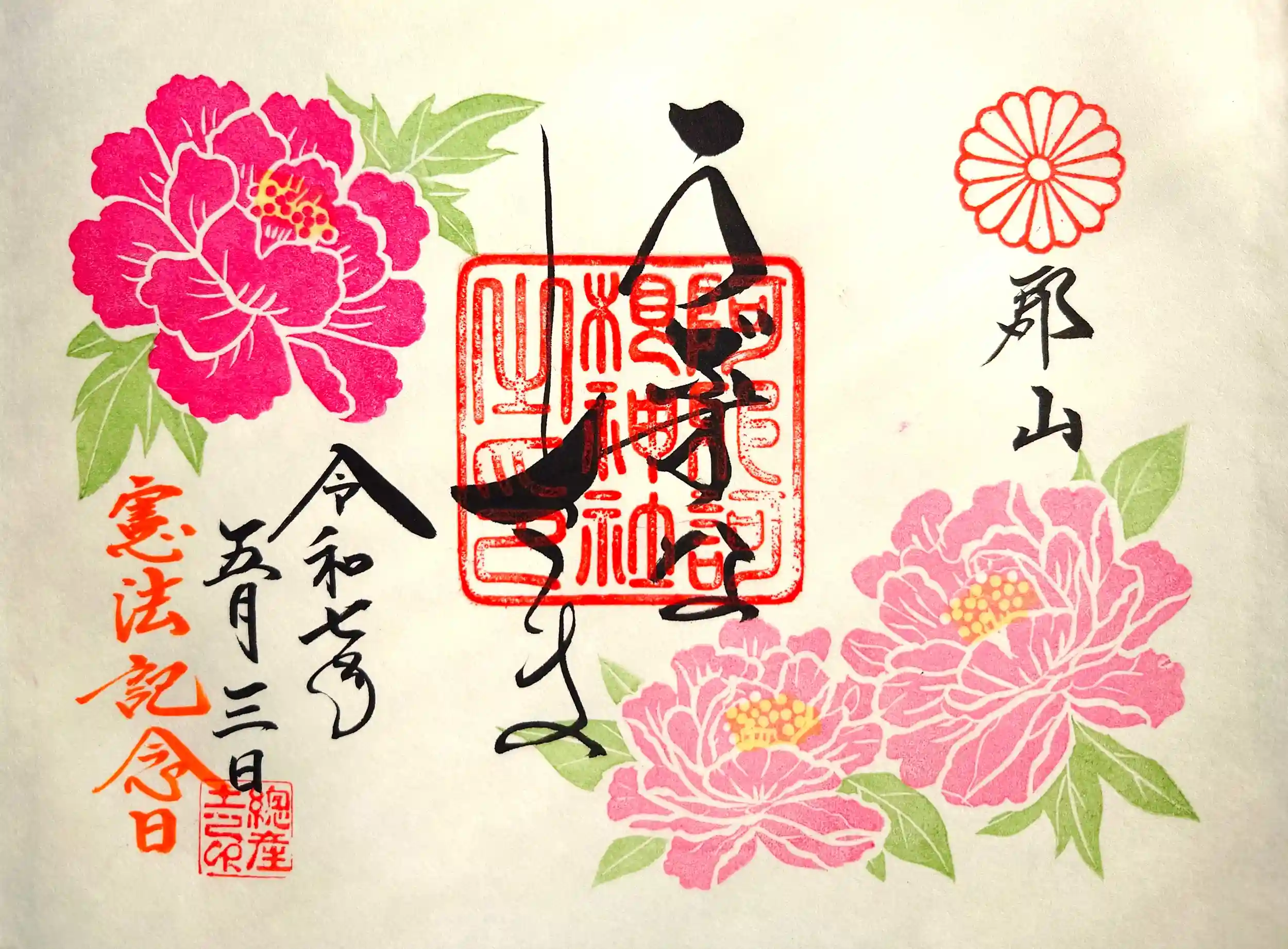5月3日にうぶすな様を参拝して5月の花御朱印『牡丹』と端午の節句・御朱印の対応して頂きました。