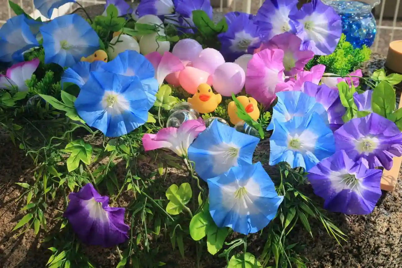 綺麗な朝顔の手水