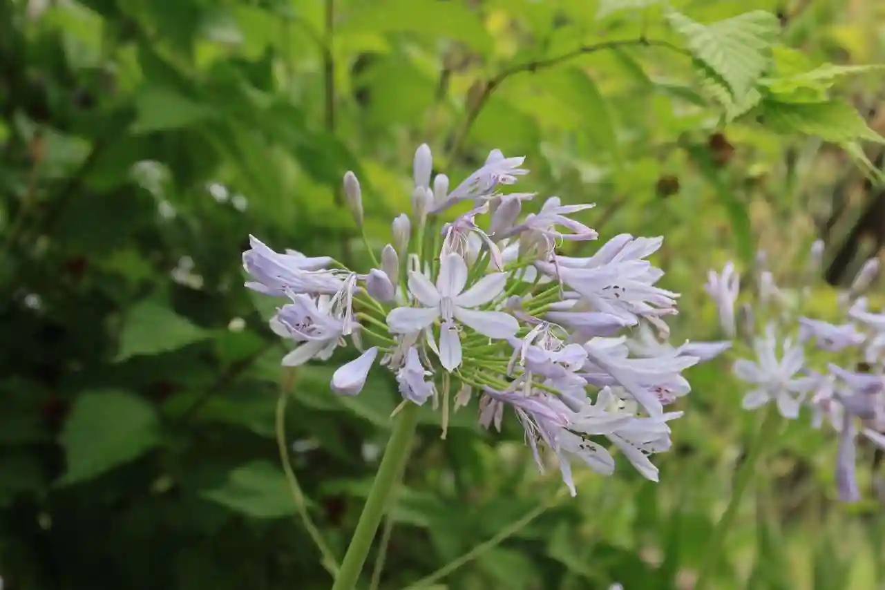 参道にはアガパンサスが咲いています