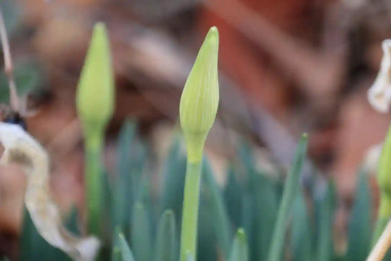 水仙の花芽も膨らんでます