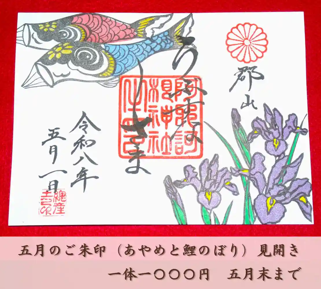 5月の見開きはストレートに!あやめの花と鯉のぼりをあしらった御朱印になりました。