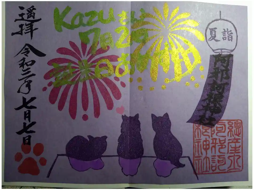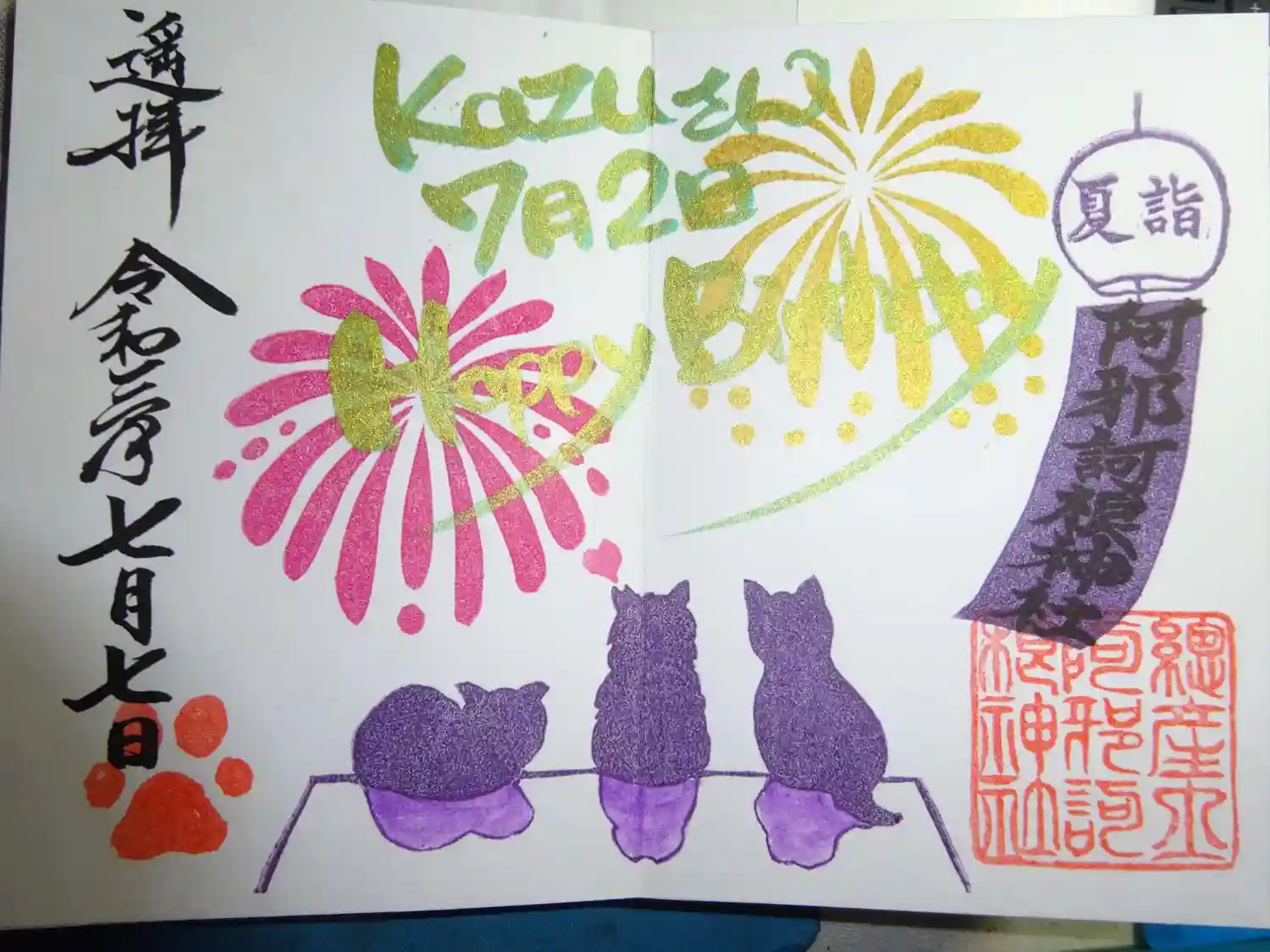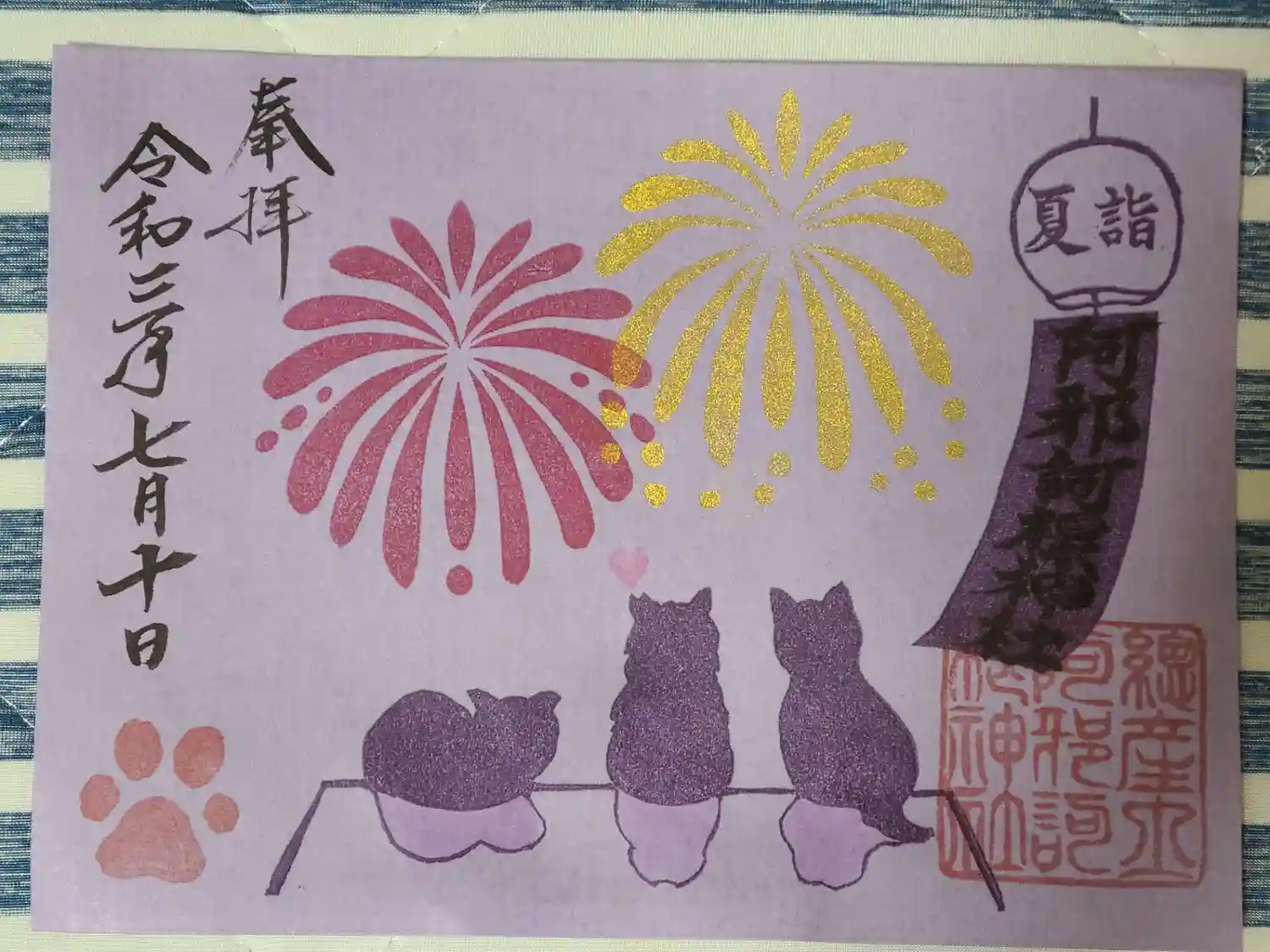 猫の御朱印。花火見物してます☺️