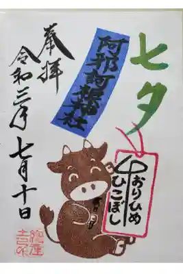 七夕牛さん相合い傘バージョン^^ ポップな牛さんがなかなかなかわいい御朱印^^