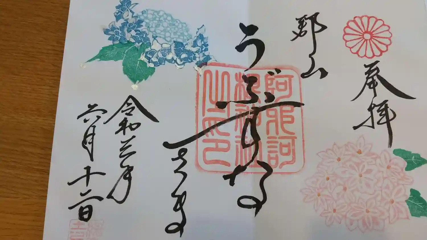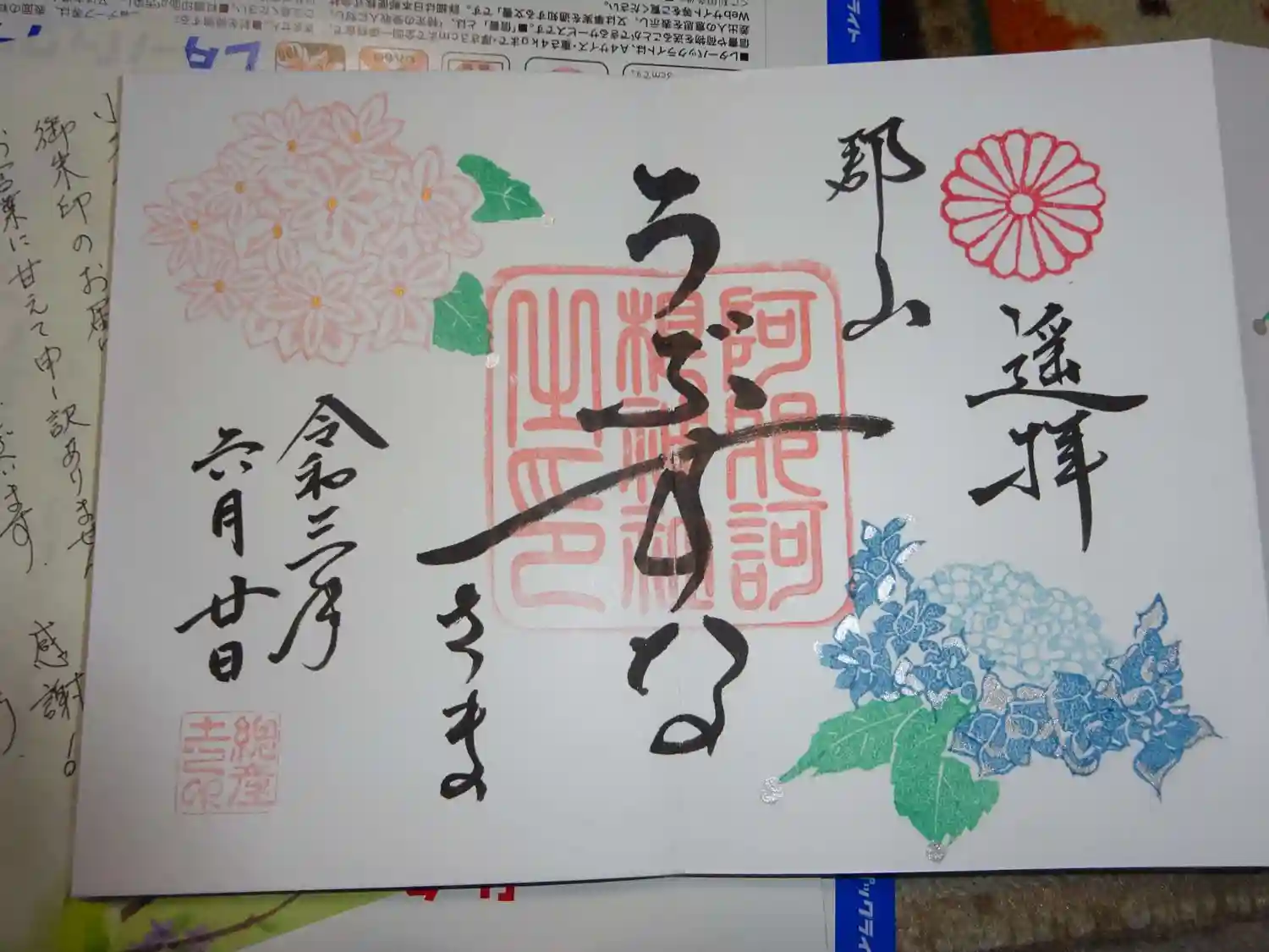 片面御朱印6月紫陽花 青^^