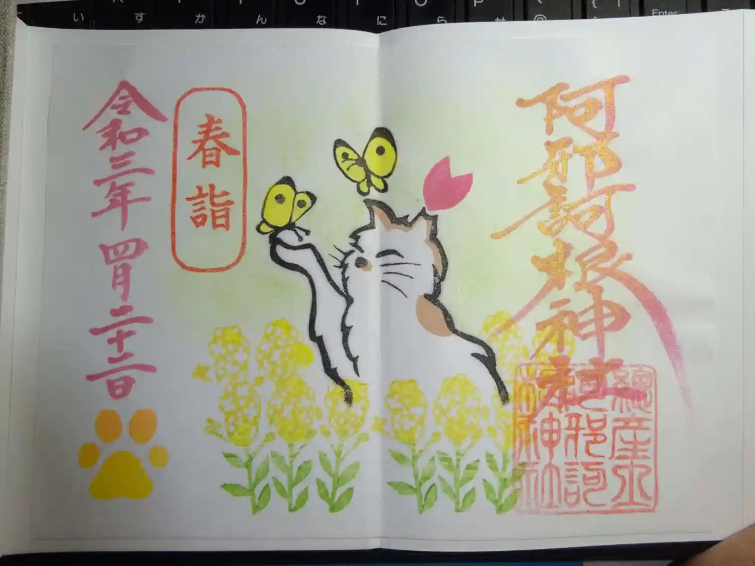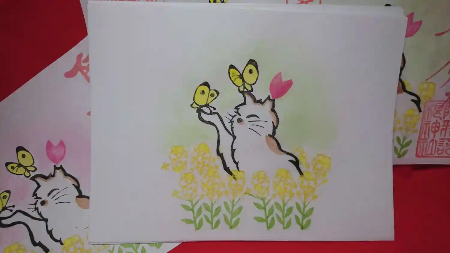 【春限定】猫の御朱印~蝶々と菜の花