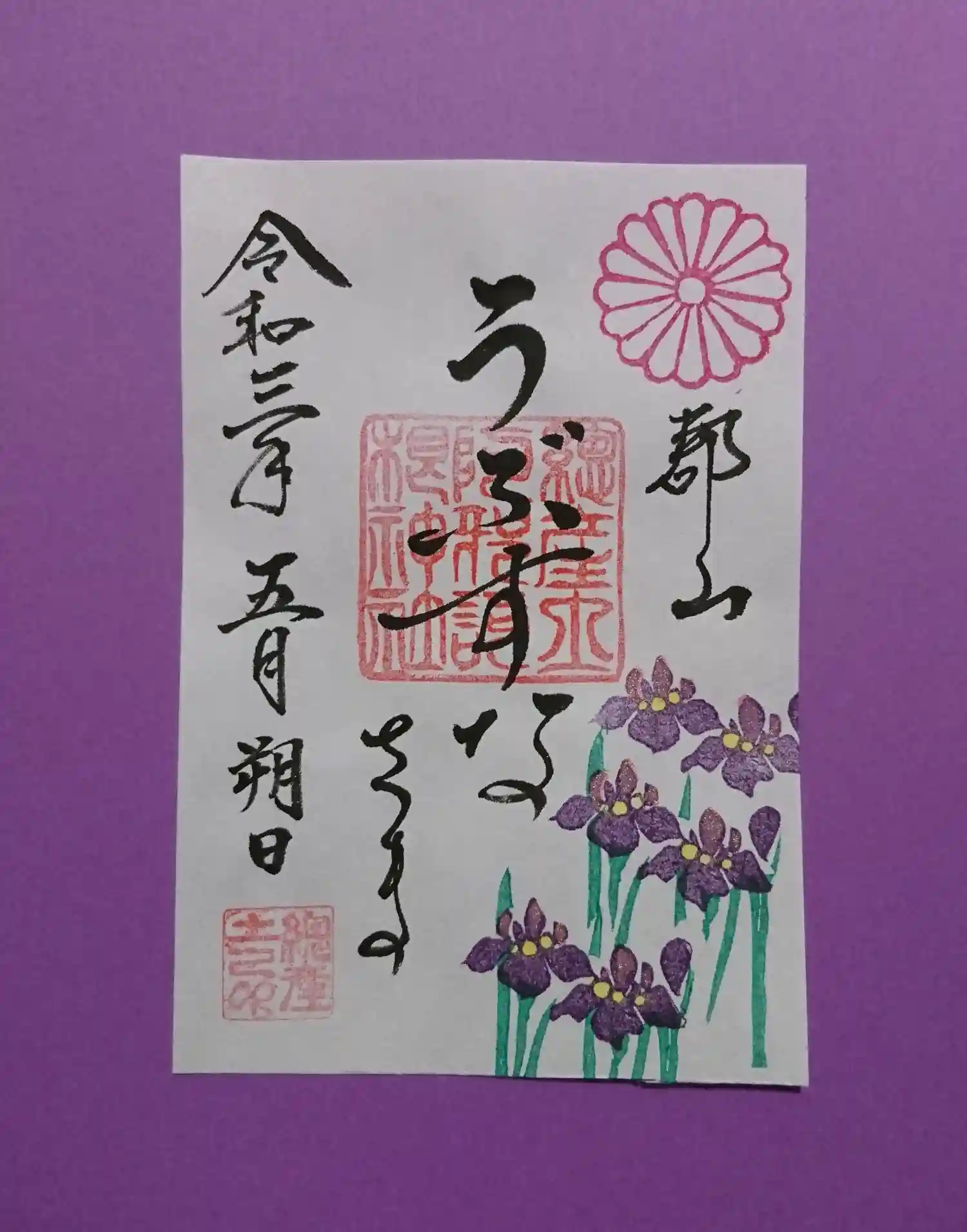 「菖蒲色」で菖蒲はんこを押しました。
