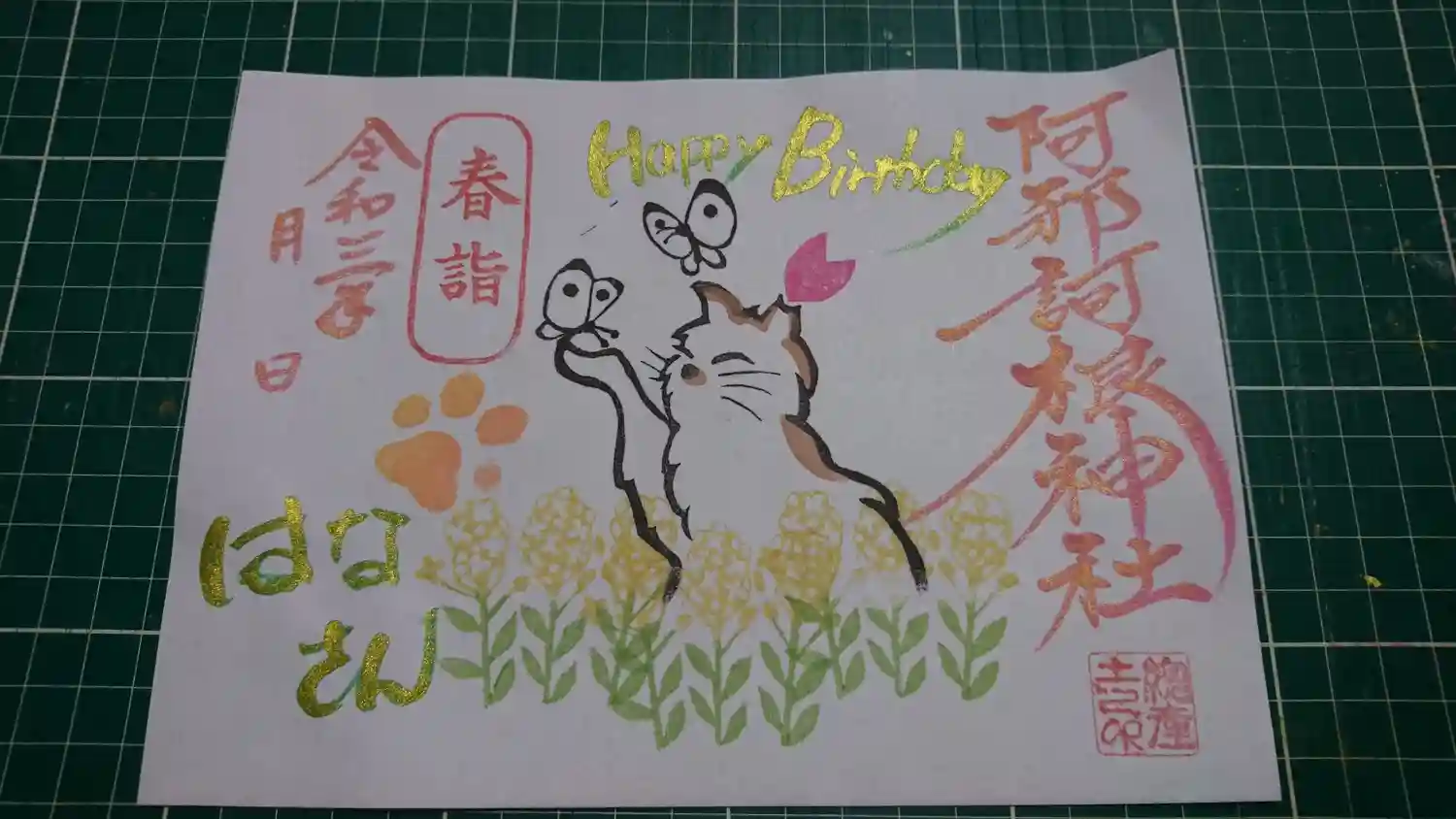 春ネコの日ハナちゃん春詣御朱印 <数量限定カラフル特別版^^>