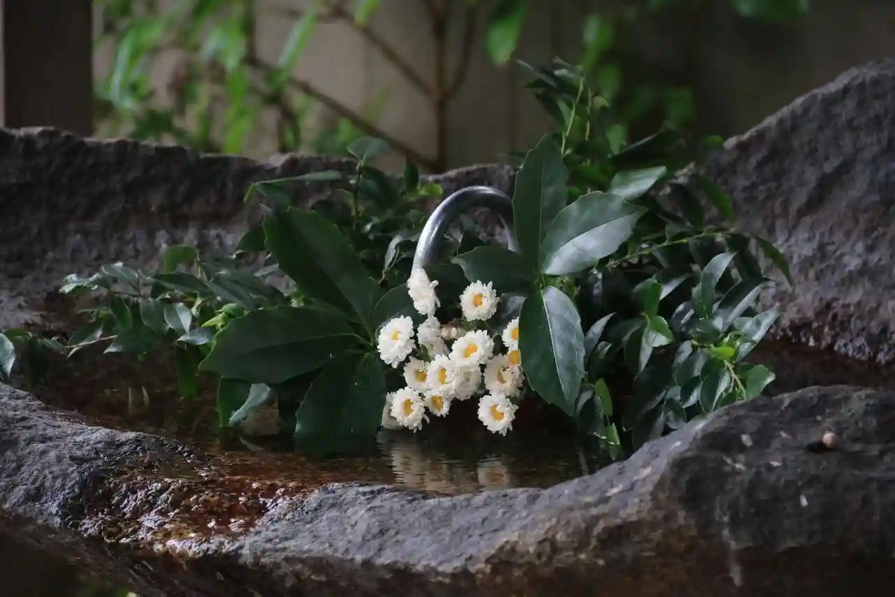 山茶花の花手水…