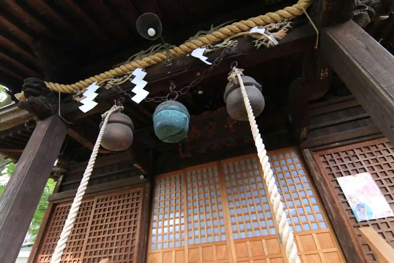 拝殿。鈴が3個もあるので、正月などは参拝者がたくさん並んでいそうです。