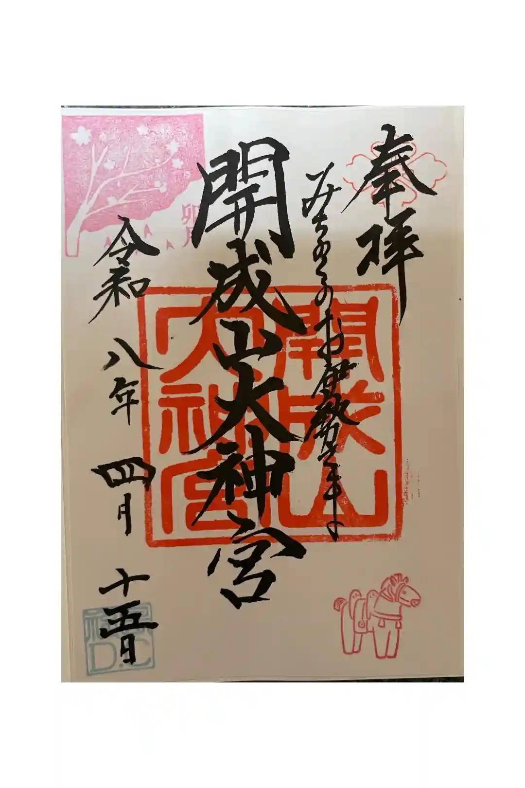 | 御朱印 | あり 真ん中に開成山大神宮、その右にみちのくのお伊勢さまと書かれ、右上に社紋の印、開成山大神宮の社印が押されています。
