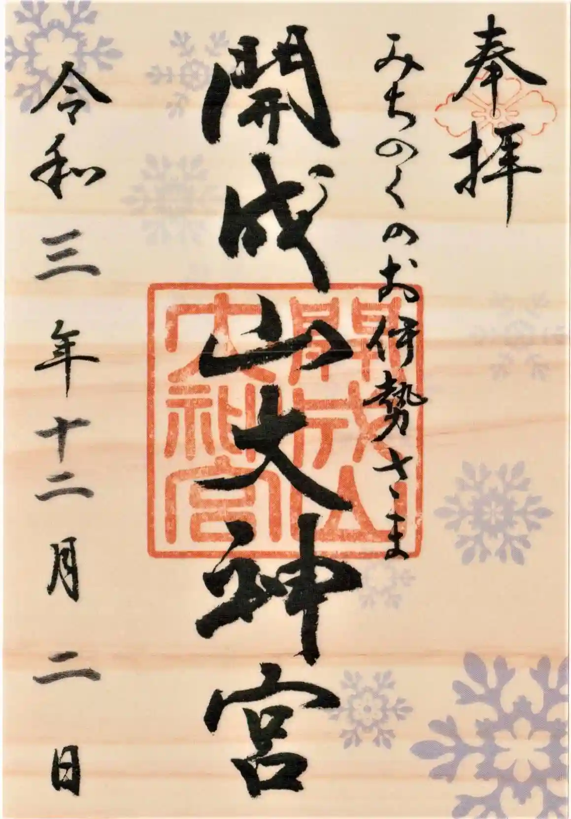 今月1日から冬季限定御朱印が先着200枚で配布されました。