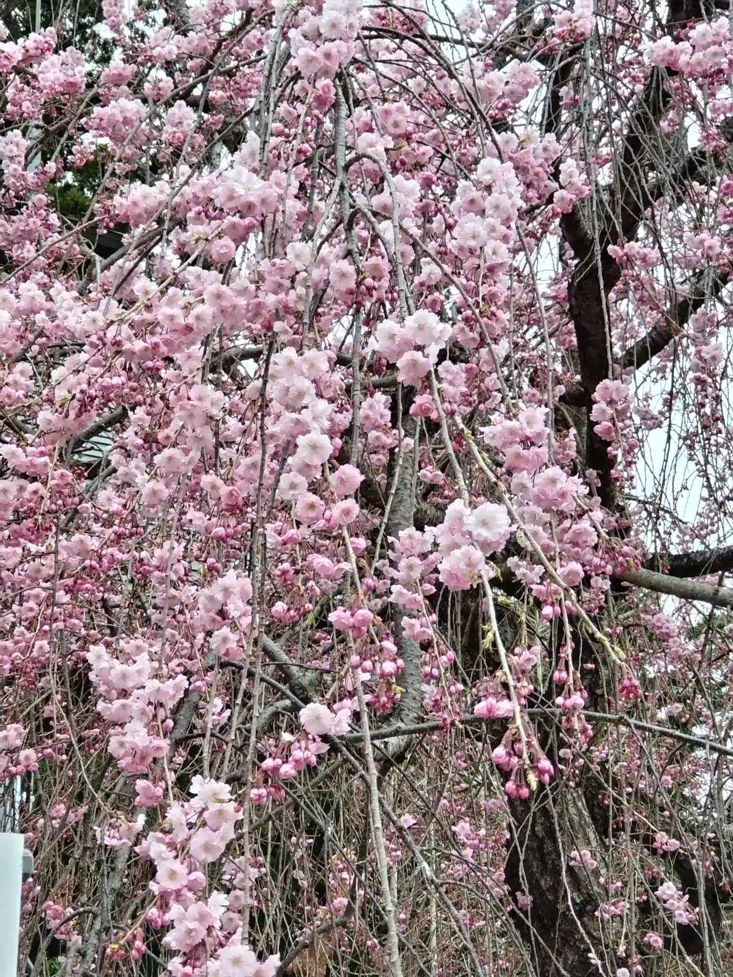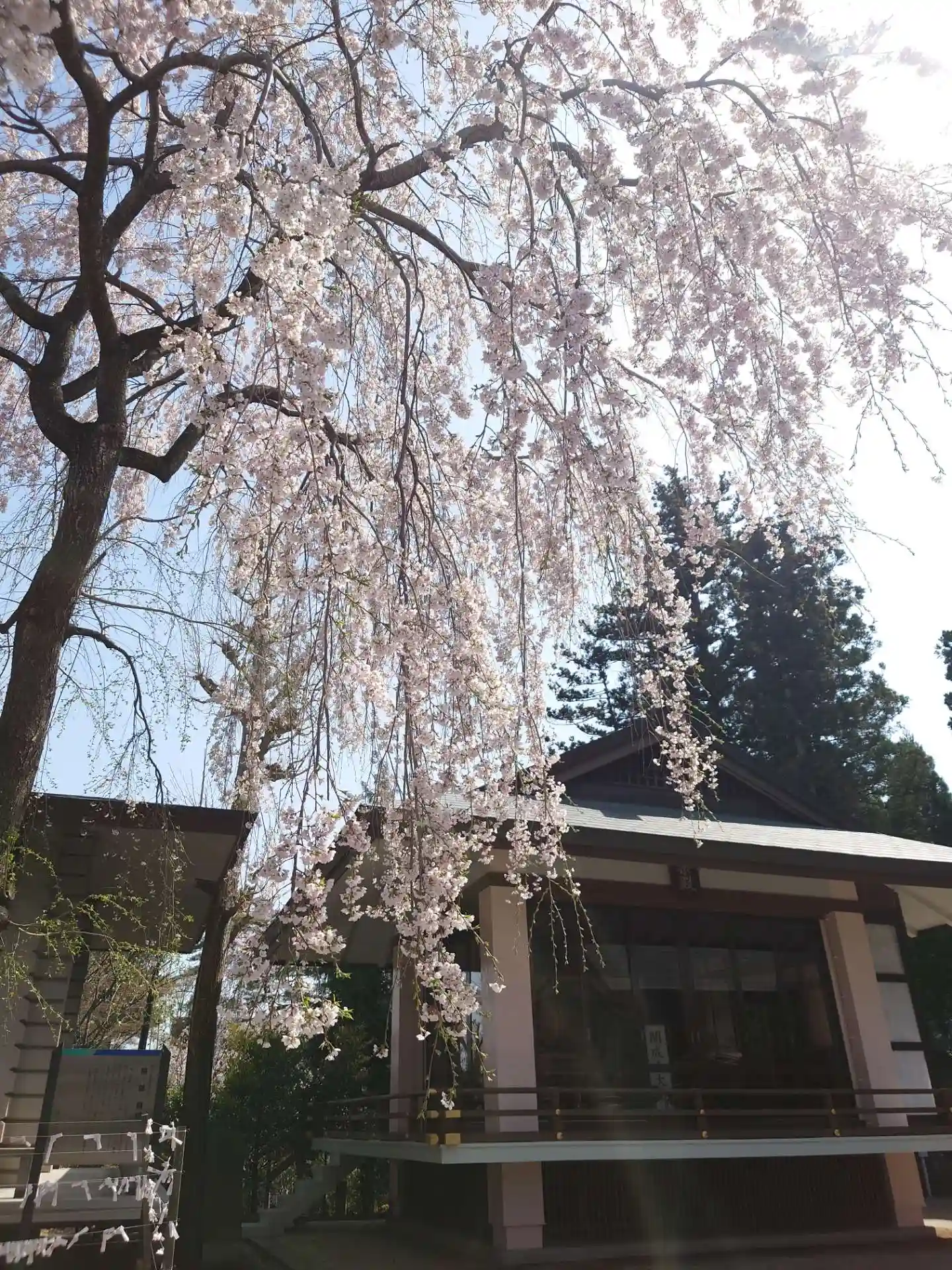 お社の杜のベニシダレザクラが見頃でした。