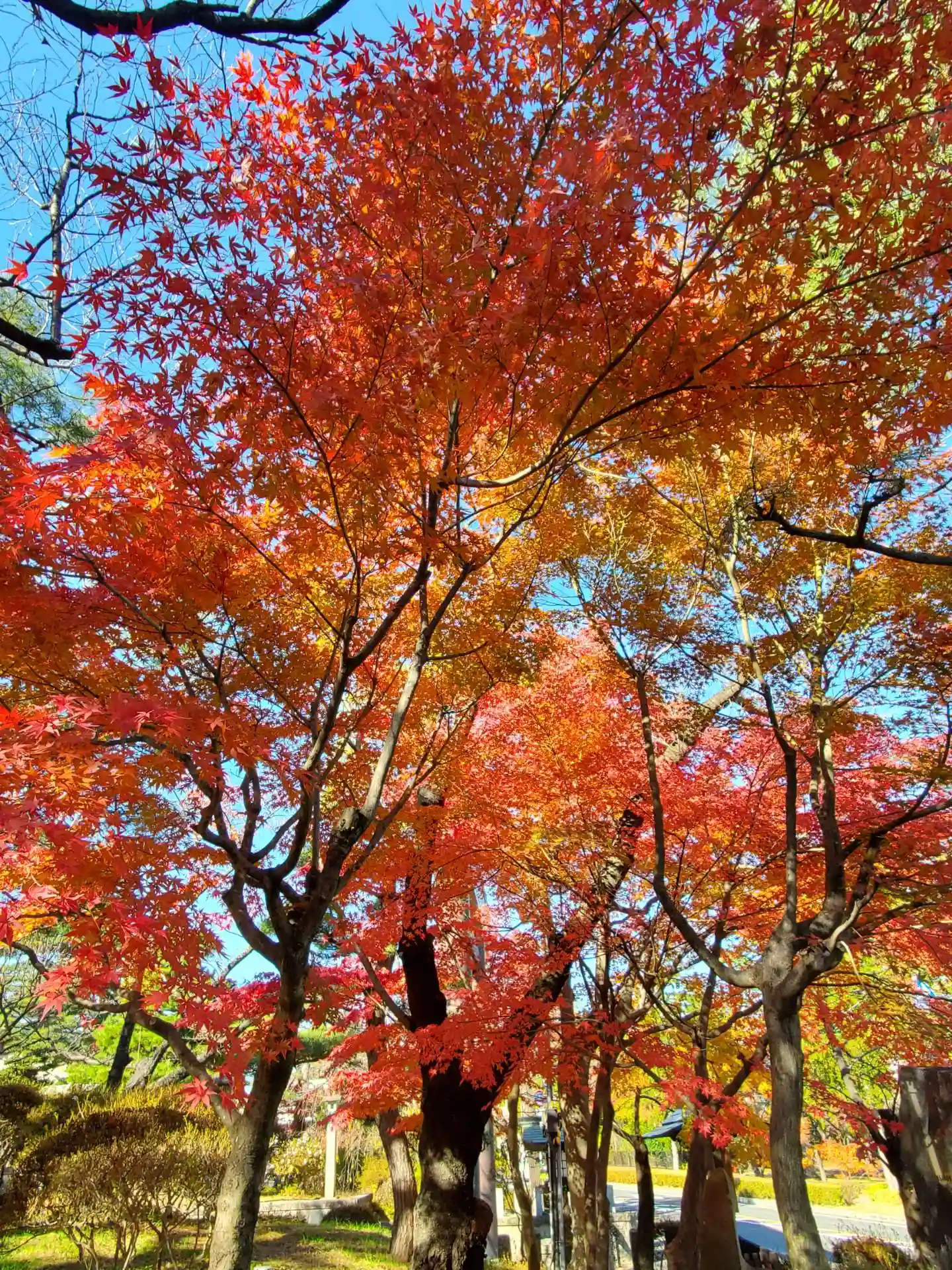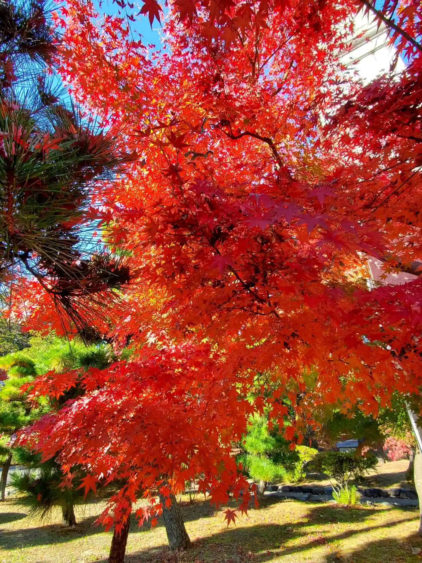 紅葉🍁が色とりどりで、太陽☀️の光に輝い…
